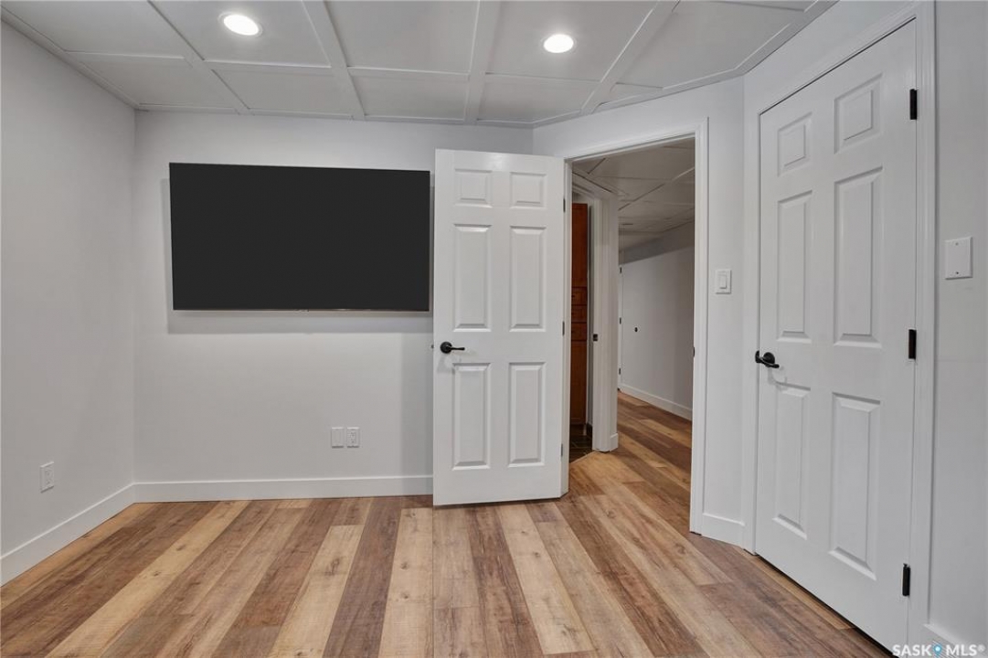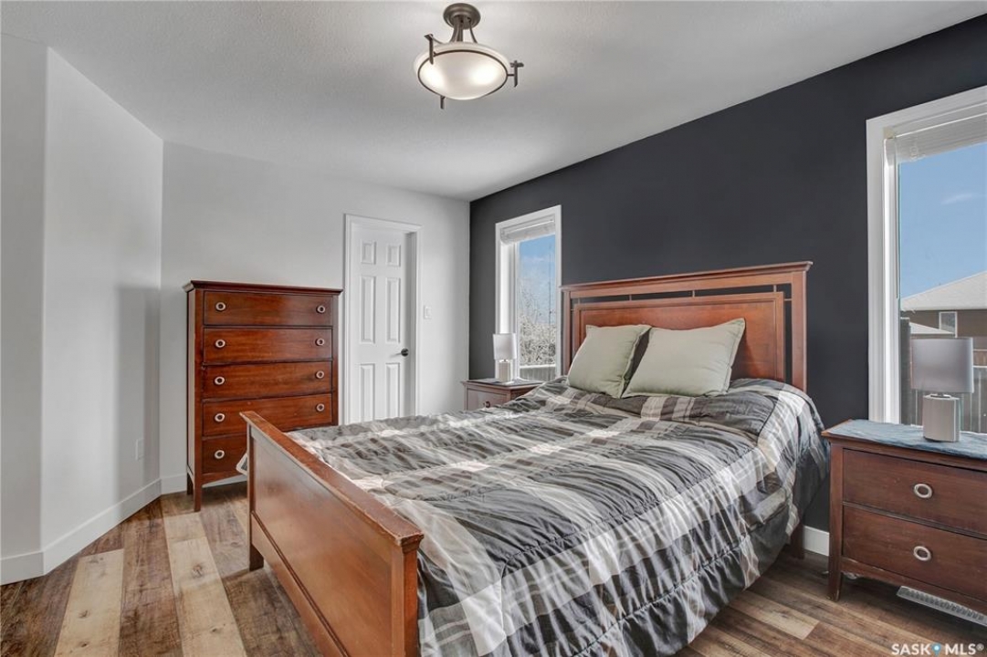 Welcome home to this beautifully updated, turnkey bungalow situated on a desirable corner lot across from green space. Offering over 1,300 sqft of thoughtfully designed living space with 5 bedrooms and 3 bathrooms, this home blends modern style, comfort, and exceptional functionality. Step inside to discover a collection of upgrades that truly set this property apart. Recent improvements include new shingles, a fresh coat of paint throughout, luxury vinyl plank flooring on both levels, and epoxy flooring in the heated garage, all contributing to a clean, modern aesthetic and lasting durability. The main floor showcases a bright, welcoming layout featuring a spacious living room and an inviting kitchen equipped with a gas range, new dishwasher, and a functional island. The adjoining dining area overlooks the beautifully landscaped backyard, creating the perfect setting for everyday meals and gatherings. A convenient mudroom adds to the thoughtful design. Down the hall, you'll find two well-appointed bedrooms and a primary suite complete with a 3-piece ensuite. The fully developed basement expands your living space with two additional bedrooms, a stylish 3-piece bathroom featuring a relaxing steam shower, a dedicated games room, and a cozy family area highlighted by a fireplace, making it an ideal space for both relaxation and entertaining. Step outside to experience the impressive outdoor retreat. The backyard is well designed with a large deck, a large pergola perfect for summer entertaining, and a welcoming fire pit area. It's a space you'll love spending time in throughout the warmer months. Additional highlights include a prime location close to schools, parks, shopping, highway access, and the renowned Legends Golf Course. With extensive updates, modern finishes, and a highly desirable setting, this move-in-ready home truly offers the complete package.