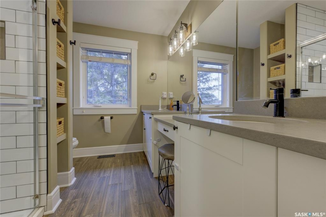 Some homes catch your eye—this one captures your heart. Welcome to this exceptional 1,757 sq ft two-storey in the sought-after community of Haultain. From the moment you step inside, soaring 9-foot ceilings, a striking gas fireplace, and an airy open-concept layout set the stage for a home that's as stylish as it is comfortable. The kitchen is a showpiece—featuring a farmhouse sink, quartz countertops, and a smart, functional design that makes entertaining and everyday living effortless. Central air conditioning keeps things comfortable, while the large deck and maintenance-free landscaping invite you to enjoy the outdoors without the work. Upstairs, the primary suite is your personal escape. A vaulted ceiling and wall-mounted electric fireplace add warmth and charm, while a massive walk-through closet leads to a spa-like ensuite with heated tile floors—a little everyday luxury you'll never want to give up. Two additional spacious bedrooms and convenient second-floor laundry complete the upper level with practicality and ease. The lower level is a blank canvas with serious potential—featuring a separate entrance, in-floor heat rough-ins, plumbing rough-in for a future bathroom, and its own electrical panel, making it ideal for a future suite or personalized development. A double detached garage completes the picture. Tucked away on a quiet, tree-lined street, this home blends modern design with timeless appeal. It's not just a place to live—it's a place to love. Book your showing today!