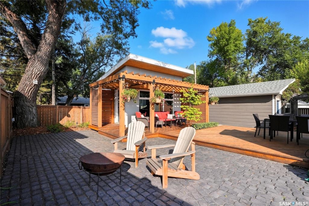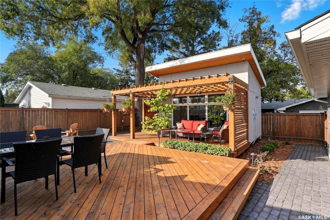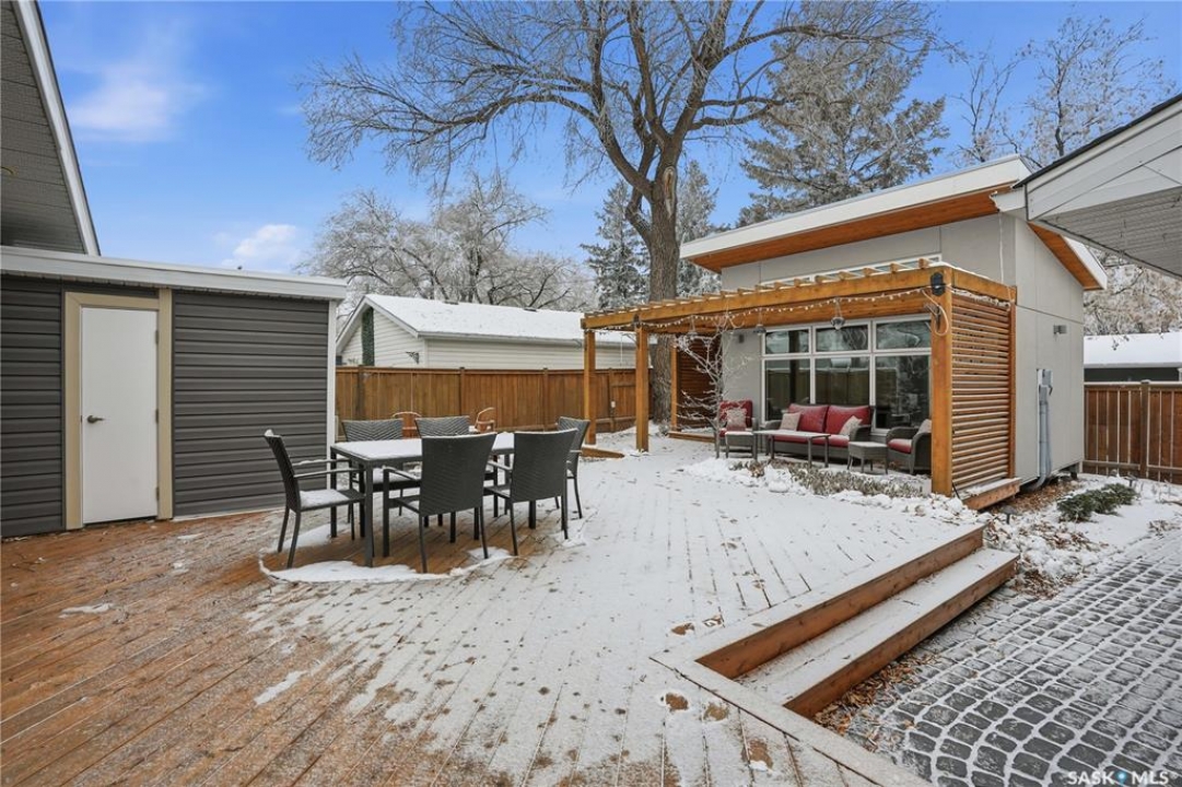 Welcome to Greystone Heights! This fully developed 3-bedroom, 2-bathroom home has been professionally renovated inside and out, offering a perfect blend of style, comfort, and function. Every detail has been thoughtfully upgraded, creating a move-in ready property in one of Saskatoon's most desirable neighbourhoods. Step inside to discover modern finishes, a bright open layout, and spaces designed for both family living and entertaining. The updates extend beyond the walls—over $200,000 has been invested in the yard and exterior, including a beautifully designed outdoor office, stone paver walkways, a spacious deck, patio, and pergola. Evening ambiance is elevated with accent lighting throughout the entire yard, making this an outdoor retreat you'll enjoy year-round. Located just minutes from Greystone Heights School, École St. Matthew, and Evan Hardy Collegiate, this home is perfectly situated for families seeking both convenience and quality education options. This is more than an updated home—it's a lifestyle upgrade. Don't miss your opportunity to own one of Greystone's finest.