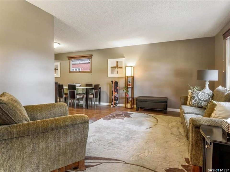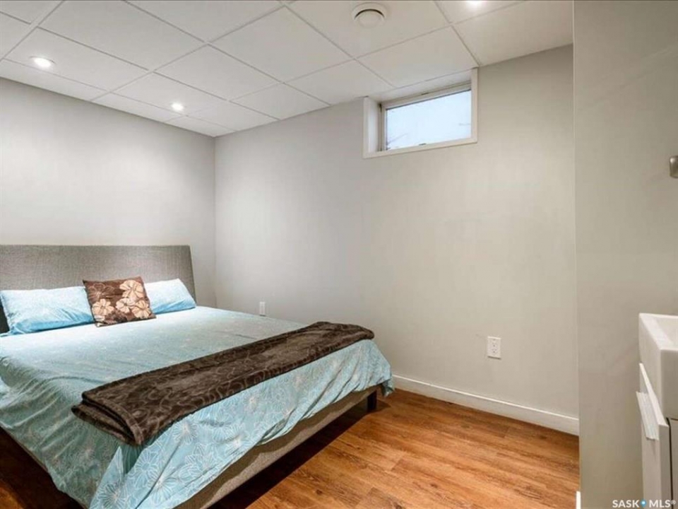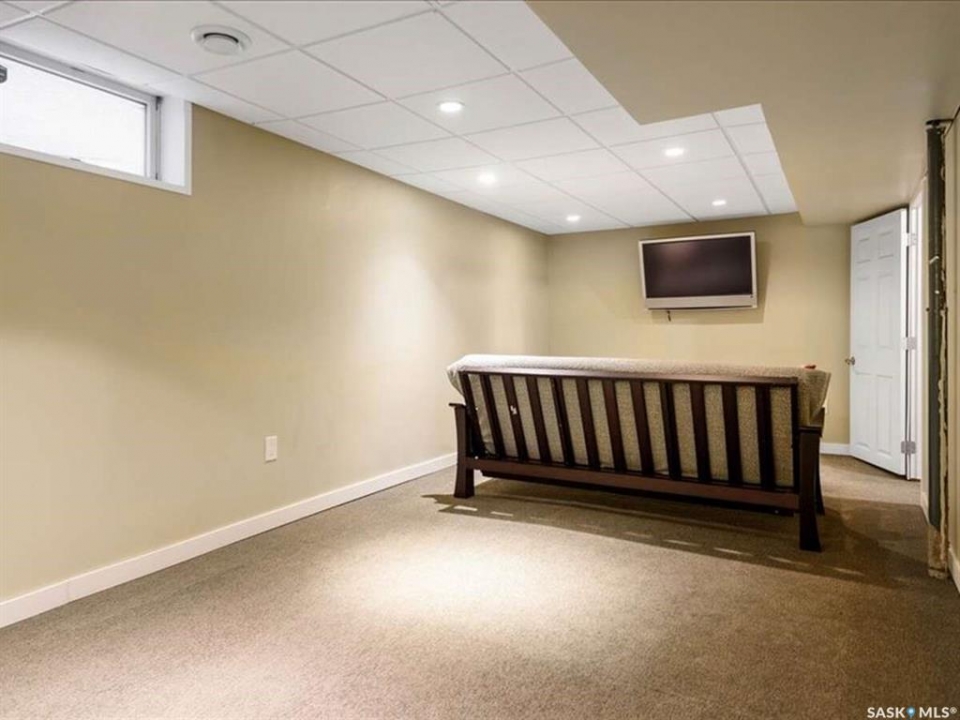 For more information, please click the "More Information" button. 1.5 blocks from the Kramer/IMAX theatre, you're steps away from Wascana Park with easy access to walking/running/biking trails, BBQ picnic areas, playgrounds, & all park festivals/activities. Miller High School & Balfour Collegiate are 2 blocks away, & Prairie Sky Elementary School is just a short 15 minute walk! A grocery store, Coffee Shops, Restaurants, a Gas Station, a Public Library Branch, and Hair Salons, are nearby amenities, giving this location a Walking Score of 84! Plus, it's a 5 minute drive to Wascana Marina to rent kayaks, canoes, or paddle boats! Stepping inside the front door, you'll see a spacious, open concept living room/dining room/kitchen. All windows have Hunter Douglas blinds providing natural insulation & the desired level of sunshine into the rooms. Durable, vinyl plank flooring covers this entire level. The front room area holds a 3-piece living room set, & the dining room comfortably holds a 6-seater table & a sideboard. The kitchen includes Orchard Park custom cabinetry & moveable island, all Kenmore appliances, & a custom Jeld-Wen Premium vinyl picture window. The Master bedroom features Jeld-Wen Premium vinyl awning windows, & a bonus closet. The finished basement can be used as potential income space. Carpet tile floors runs throughout the landing, hallway, and recreation room. Vinyl plank covers the bathroom & bedroom floors. Dimmable pot lights are in all carpeted rooms, & the wall-mounted Sony 40" flat panel TV is included. The storage room contains the sub-pump & plenty of shelving/storage. The laundry/furnace room includes a dryer, a washer (capable of handling very heavy loads), and a storage cupboard. The backyard has a good-sized concrete patio & garden spaces, plus a no-maintenance deck. The 2-car garage is insulated & electrified and backs onto a paved lane.
