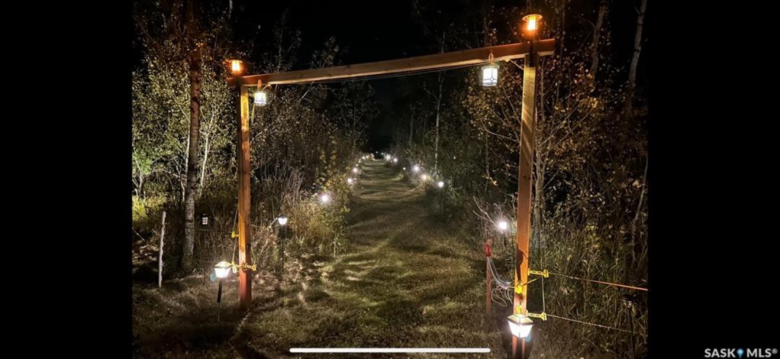 This would be a hunters paradise for sure. With surrounding bush and open grass space, there is a lot of opportunity to expand this 20 acres into more! A four season retreat or campsite. Imagine your own private 20 acres ideally located a short drive to or from Batoche, the river, or Wakaw Lake. This unique property has many outbuildings including a one of a kind small cabin, a separate bathhouse, bunkhouse, party room, commercial see can kitchen, large covered picnic area with a fire table. Or maybe you would prefer walking around the lighted trail system. Like solar light? Then enjoy the incredible solar display on the trails featuring hundreds of solar lights making this property truly one of a kind! Fruit trees? This property has Saskatoons, raspberries, and chokecherry trees. Hunters, ATV, and snowmobilers take note as this is a great area for wildlife and outdoor adventures. Or maybe explore the possibility of making this property into a campground or your own private dream acreage. 200 amp power, 1200 gallon seasonal water tank. Infrastructure already setup servicing the site plus most outbuildings have heat and A/C installed. Most furniture and lawn tractor will stay if desired. Motor home and other vehicles are negotiable. Call now for a private showing while it lasts.