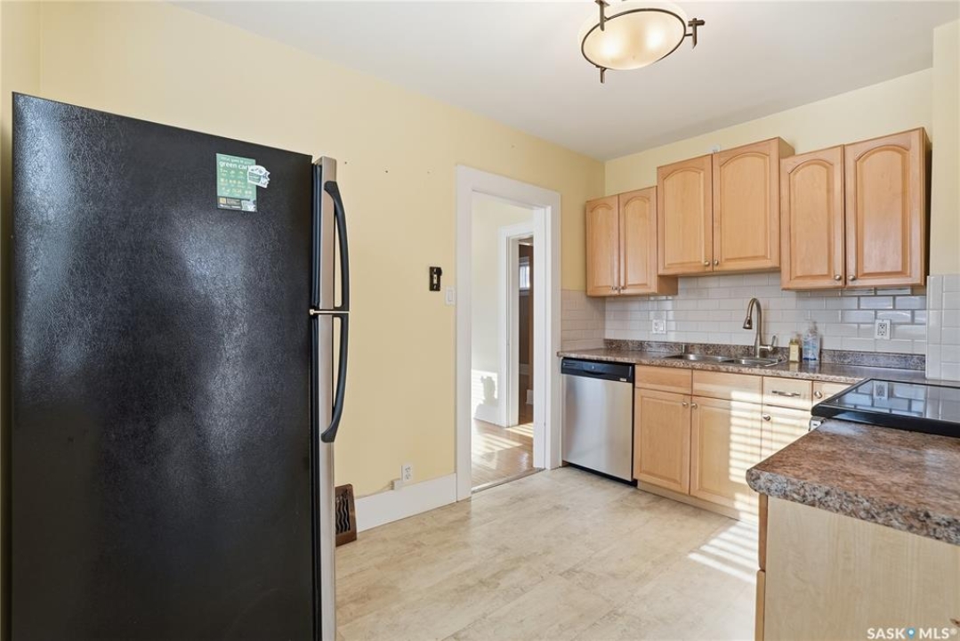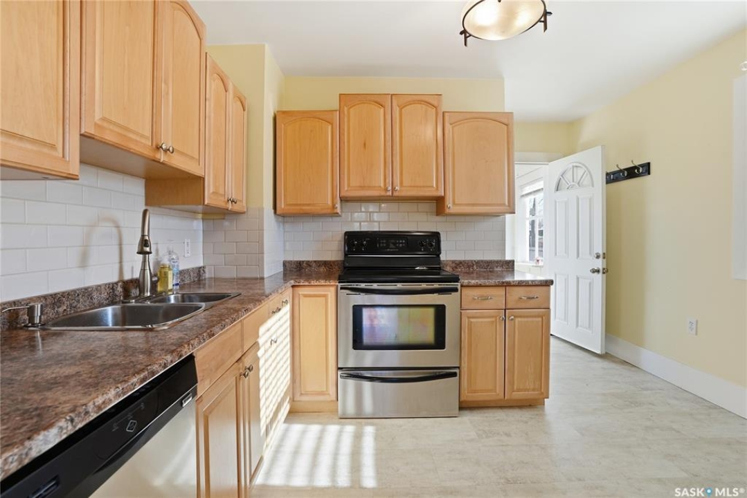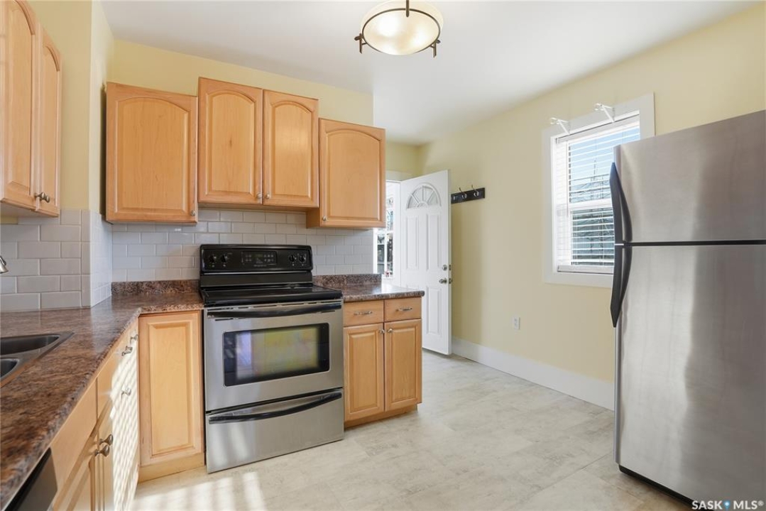 Welcome to the little blue bungalow on Avenue B North. Packed with charm and refreshed from top to bottom, this home blends character details with modern updates in all the right places. The exterior stands out with new siding, cedar shakes, updated windows, and shingles, giving it a bright, welcoming look. Inside, the living room offers warm hardwood floors and sunny windows that make the space feel cheerful and bright. The kitchen has been modernized with butcher-block counters, a tile backsplash, stainless appliances, and crisp cabinetry that adds style without trying too hard. Two cozy bedrooms and a full bath finish the main floor.