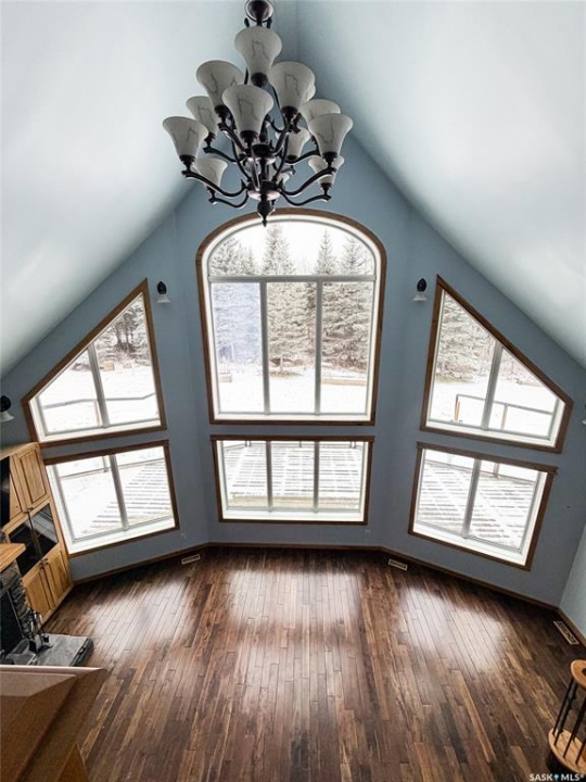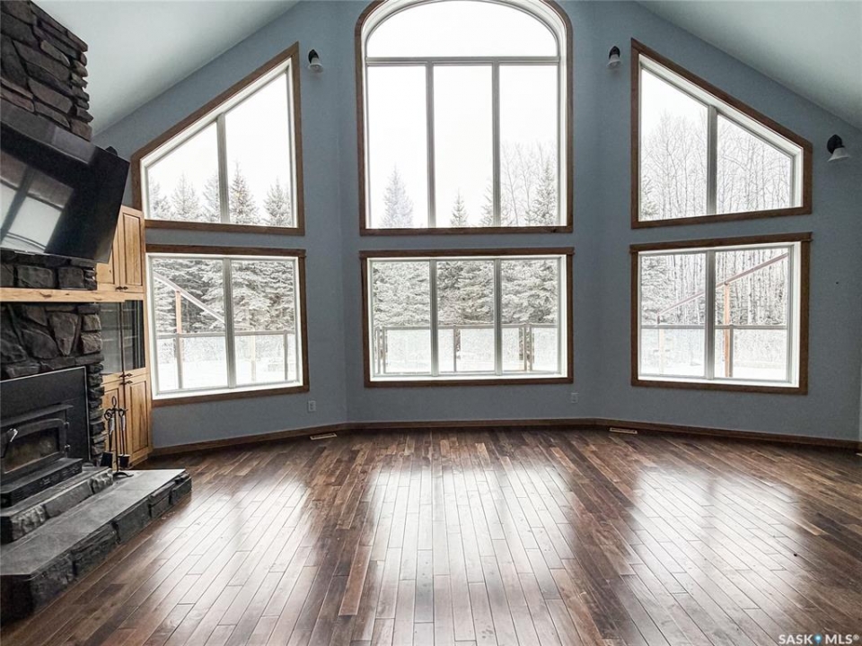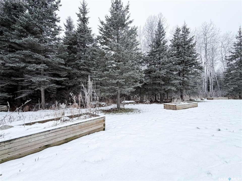 House is custom storey and a half walkout home is situated on 5.07 acres just minutes south of Meadow Lake. Built in 2008 with efficiency in mind, this home is well insulated with extra thick walls, and provides the reliability of geothermal energy to heat and cool to your comfort level. Rich hardwood floors throughout much of the home, hickory cabinetry and granite in the massive kitchen. The living room with a cozy fireplace is the main focal point with a massive wall of windows with views of forest and sky. Open concept main level provides the space to entertain family and friends on all occasions. The main level primary bedroom is spacious with a walk in closet and 5 pc ensuite as well as patio doors leading to the wraparound deck. There is a designated main floor office space, laundry room as well as access to the attached garage as well. The 2nd level offers two large bedrooms, a custom 3 pc bathroom and a nook area overlooking the living room. Lower level provides an additional 2 bedrooms, a 4 pc bathroom with great storage, family room, gym area, utility room and great storage rooms. The yard site is surrounded with mature trees and the Provincial forest right in your backyard! For more information don't hesitate to call.