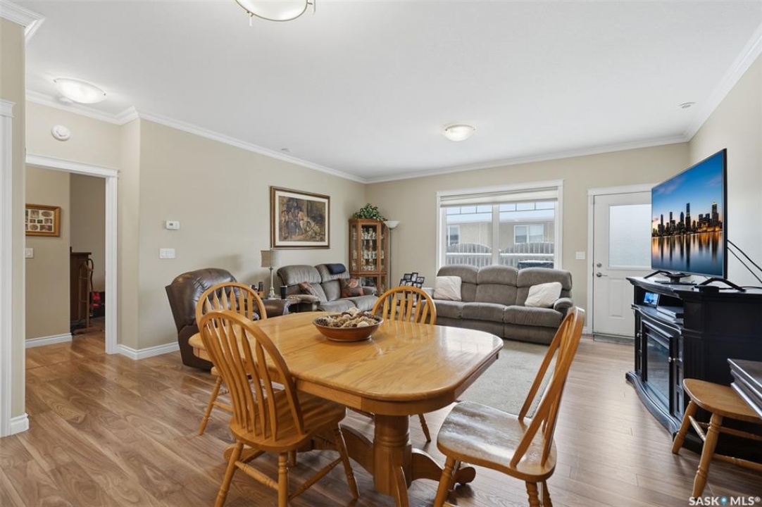 Welcome to #31-100 Brooklyn Lane...a 45 unit complex in Warman called Diamond Place. This unit offers 1770 square feet on two levels. Main level has 9 foot ceilings and features a spacious living room with adjacent dining room & kitchen area complete with an island and all appliances included. Kitchen upgrades include cabinets to the ceiling, stainless steel appliances and granite countertops. The Primary bedroom is on the main floor and offers a good sized walk-in closet and 3 piece ensuite, plus there is a den area and a 2 piece bath laundry combo area. The 2nd level also features 9 foot ceilings and offers another bedroom plus a family room area and a full 4 piece bath. There is a 20 x 22 double attached garage with direct entry. Visitor parking is located immediately South of this unit and is perfect to park your RV to load and unload with a 48 hour time limit. The condo fees set at $600 per month include heat (slab on main plus high velocity air on 2nd floor) water, sewer, reserve fund, common insurance, snow removal, exterior maintenance and garbage. Call your agent today to view this Original Owner Property!