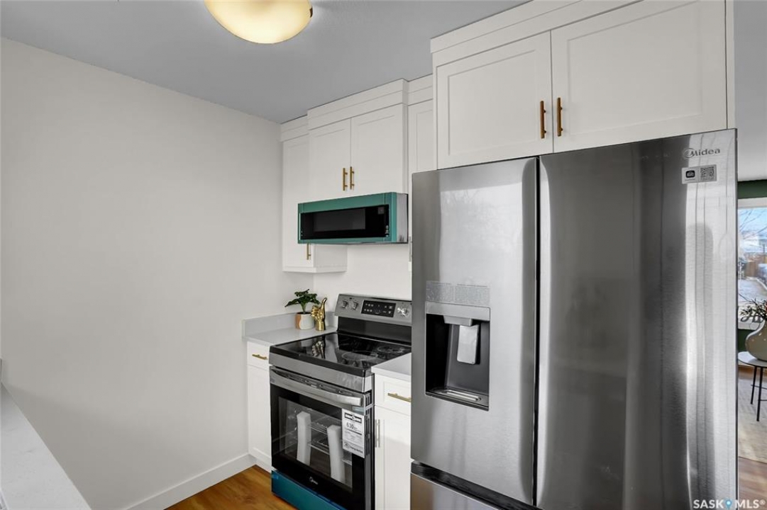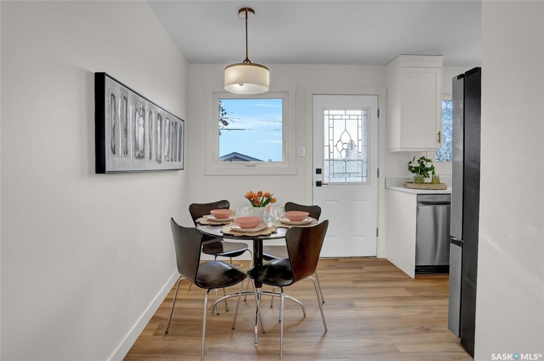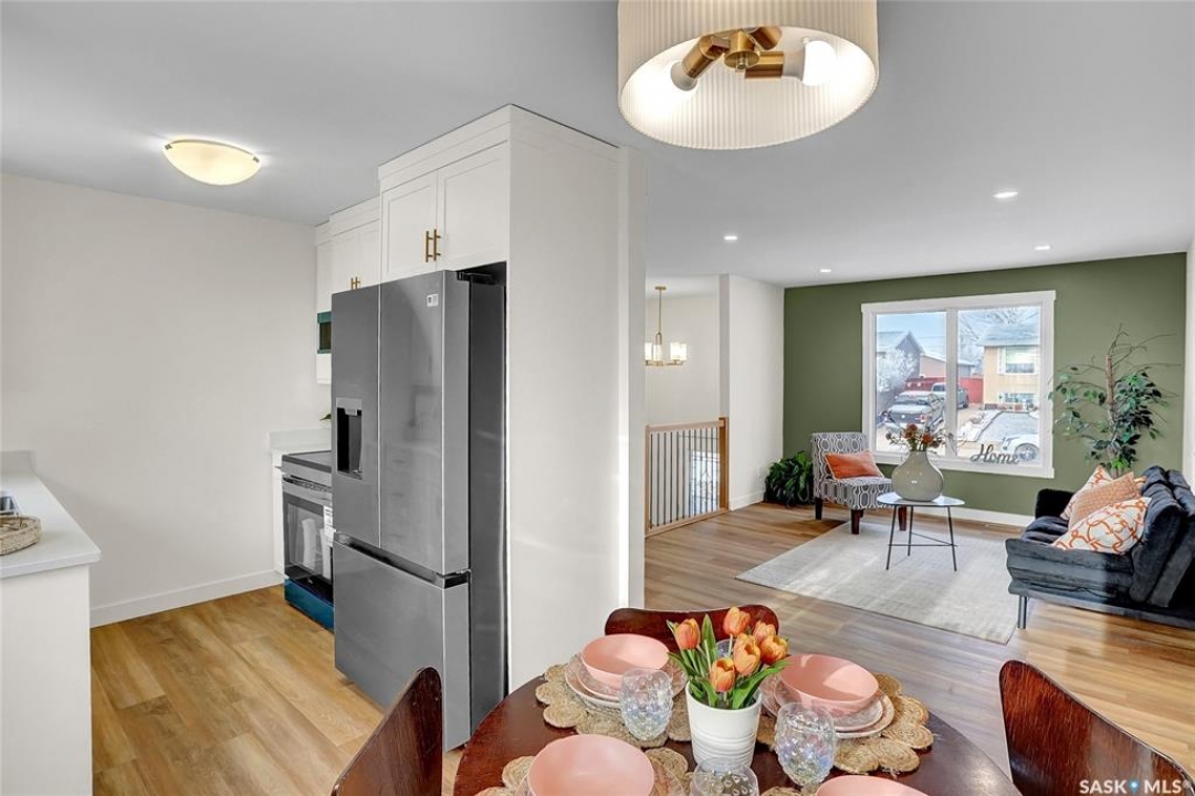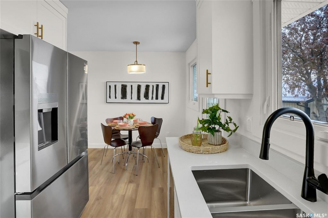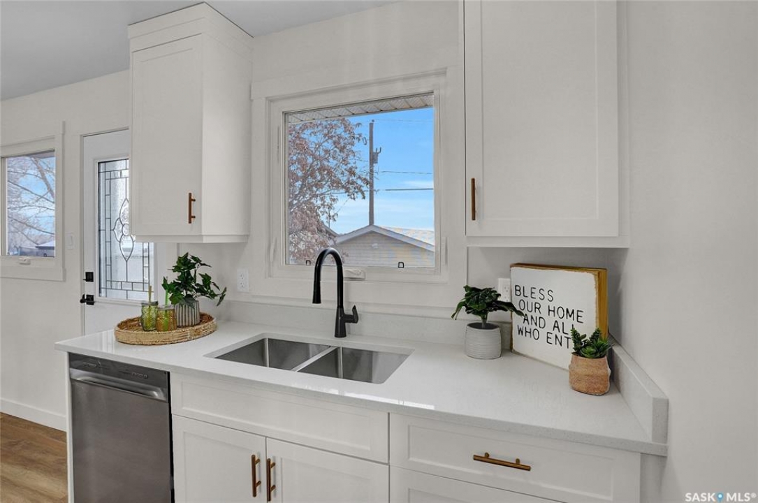 Discover the charm and modern convenience of this affordable, newly renovated home with no backyard neighbours. The property has been tastefully renovated throughout the interior, making it both stylish and functional. This is the cutest home, welcoming foyer, seamlessly flowing into the Living, Dining and Kitchen with new stair banister. Updated windows only enhance the luxury vinyl floor that flows throughout the main floor filling the home with natural light. The kitchen enjoys quartz counters, new stainless steel kitchen appliances including fridge, stove, built in dishwasher and microwave hood fan. You will love the gold hardware and new lighting fixtures. The main floor hosts 2 bedrooms and this floor is complete with an updated 4pc. Bath with soaker tub with tile surround. The lower level is finished boasting a family room, with game area or a perfect spot for an office/craft or workout space. This floor is complete with a great sized 3rd bedroom, 3 pc. bath with full tub surround w/seat, laundry & storage in the utility room. This family home boasts s high efficiency furnace, water heater, new electrical panel and has a sump pump. The south facing yard is fully fenced with a wonderful deck accessible from the dining area, it is perfect for outdoor relaxation, entertaining and enjoying the sun. The landscaping is an open canvas to create your own oasis and has room to create a garden and the kids to play. The Bonus is the Dbl. Det. Garage, insulated, with alley access which is in addition to the front drive. This home represents an excellent opportunity to own a like-new property in a beautiful family-friendly area, steps to walking paths, and recreational parks. CLICK ON THE MULTI MEDIA LINK FOR A FULL VISUAL TOUR, and call today and let make your next move to live more beautifully. (Note bedrooms and lower level family room are virtually staged).