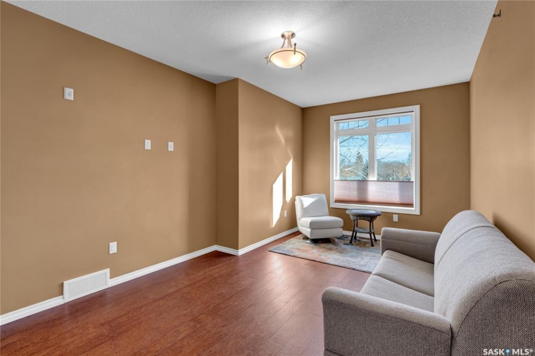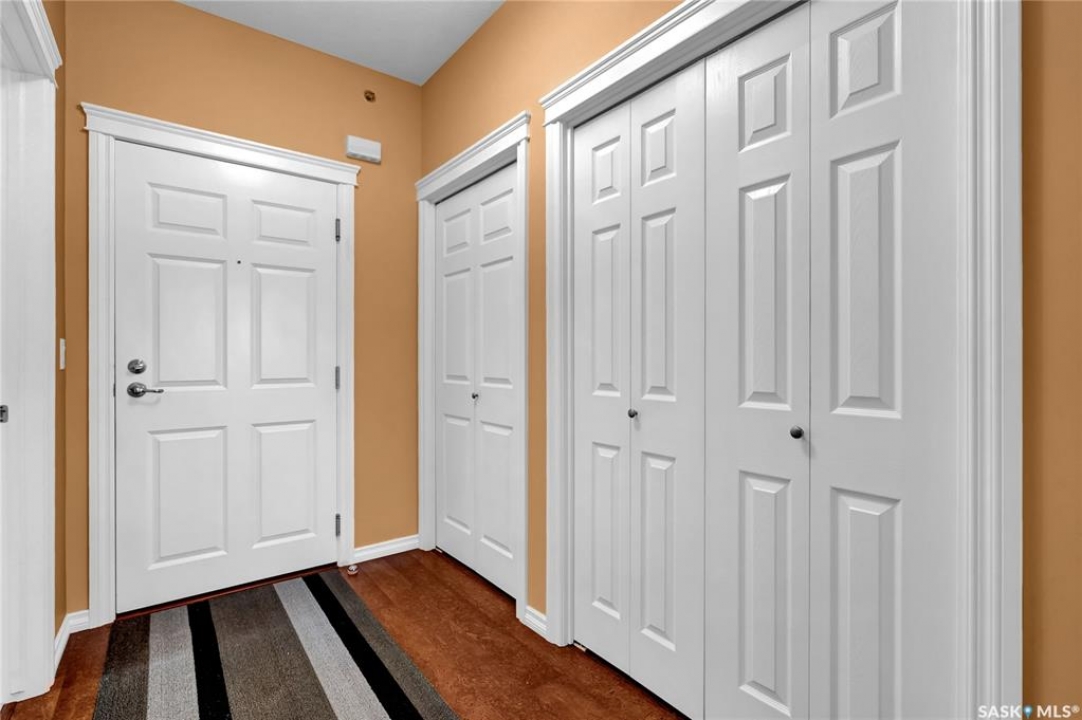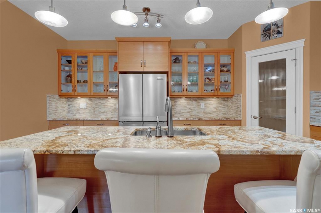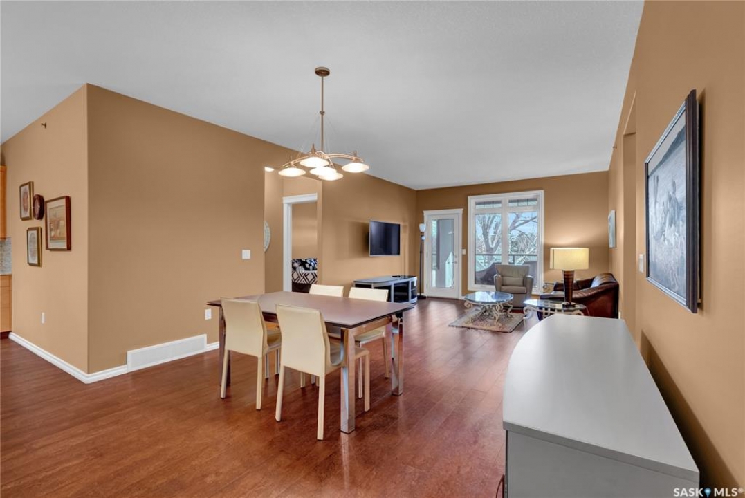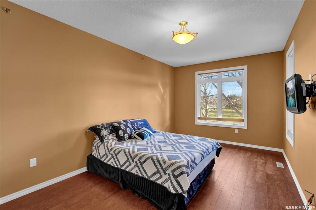 Experience refined condo living in this executive-style 1,475 sq. ft. residence, featuring two bedrooms plus a den and tucked away in a quiet, secluded location on the second floor with serene views of the park. A spacious front foyer welcomes you into the home, showcasing warm cork flooring and an impressive open-concept layout enhanced by nine-foot ceilings. The bright living room offers a garden door with a Phantom screen leading to a large balcony complete with a natural gas BBQ hookup—perfect for relaxing or entertaining while enjoying the park setting. Adjacent is a generous dining area that flows seamlessly into the dream kitchen. This beautifully appointed space features upgraded horizontal-grain cabinetry, granite countertops, a large centre island, glass-panel upper cabinet doors, convenient pull-out drawers, upgraded stainless steel appliances, and a walk-in pantry. The park-facing primary bedroom is a true retreat, complete with a walk-in closet and a spacious 3/4 ensuite featuring built-in cabinetry and an oversized shower. A generous second bedroom is conveniently located near the full main bathroom. A versatile den or office, along with a dedicated laundry room and separate storage room, adds to the home's functionality. Additional highlights include two heated underground parking stalls and a secure storage locker. Residents enjoy a host of exceptional building amenities such as a guest suite, amenities room, exercise area, visitor parking, main-floor lounge, expansive outdoor patio, workshop, and beautifully maintained grounds. This exceptional property offers comfort, privacy, and convenience—truly a wonderful place to call home!