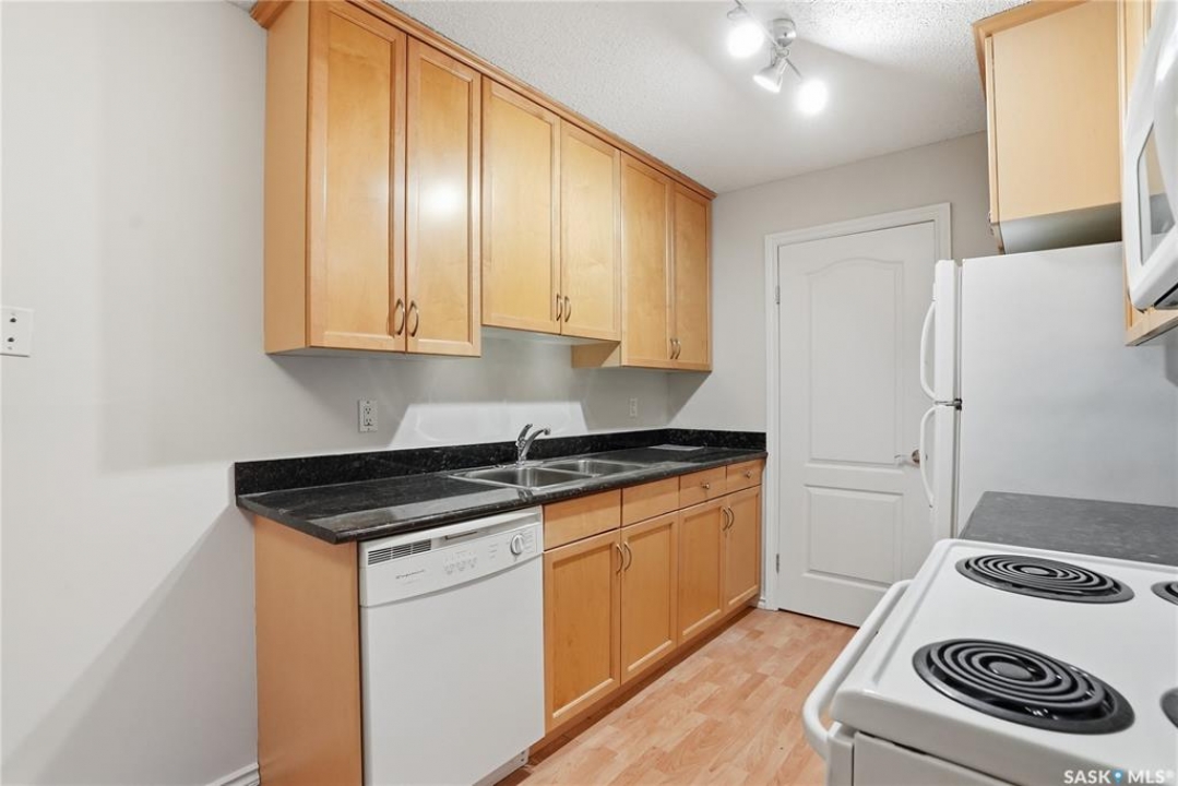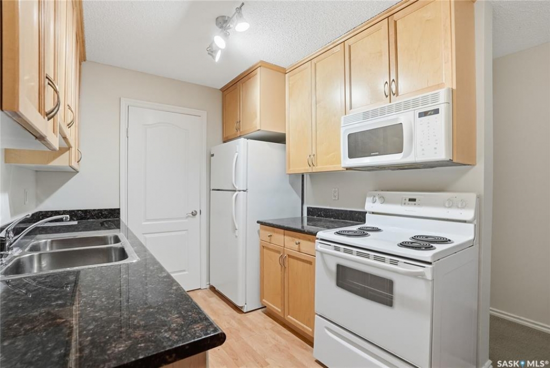 Situated in a convenient Wildwood location just steps from everyday amenities, this east-facing second floor condo offers 883 sq ft of comfortable, move-in ready living. The layout includes 2 bedrooms, 1 bathroom, and the added benefit of in-suite laundry, making it a practical option for students, first-time buyers, or anyone seeking low-maintenance living. Residents also enjoy access to the nearby recreation centre, adding extra convenience and lifestyle appeal. Freshly painted, with a well-kept maple kitchen featuring granite countertops and updated windows, the unit feels bright and welcoming. Both bedrooms are generously sized, and the bathroom is neat and functional. With 2 electrified parking stalls, this condo provides excellent convenience for multi-vehicle households or frequent guests.
