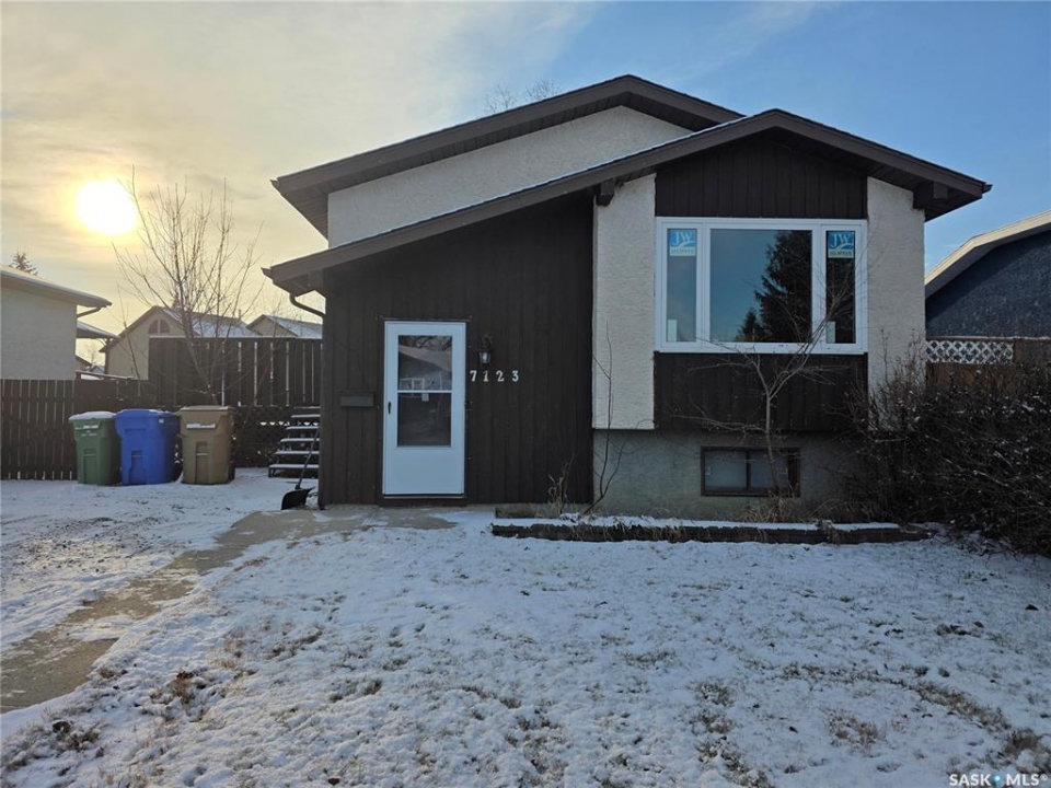NEW LOOK! NEW LIFE! Welcome to the fresh & polished version of your next home. Reimagined with updates buyers will love, this 2 bedroom, 1 bathroom bi-level has undergone the perfect glow-up. Enjoy brand-new flooring & baseboards throughout the main level, a new front storm door, & fresh paint touchups that make the home feel bright, crisp, & move-in ready. Step into a welcoming front-facing living room filled with natural light; warm, open, & ready for cozy days or lively evenings. The eat-in kitchen flows seamlessly off the living space & comes equipped with fridge, stove, & built-in dishwasher, making meal prep and daily life convenient & comfortable. Just off the dining area, patio doors lead you to a freshly painted two-tier deck & gate, extending your living space outdoors. Picture BBQ nights, morning coffees, & watching kids or pets play; plus cherry & plum trees right in your backyard for sweet summer picking. Two bedrooms & a full bathroom complete the main floor. The basement is framed & waiting for your vision; future rec room, den/office, bathroom, laundry, &/or storage - giving you opportunity to add value over time. Practical, big-ticket updates add peace of mind & long-term value, including newer shingles, updated main floor windows, & central A/C for summer comfort. Located in family-friendly Rochdale Park, you're steps from NW Leisure Centre, Doug Wickenheiser Arena, parks, shopping, & convenient north-end amenities. A front gravel driveway offers plenty of off-street parking.
