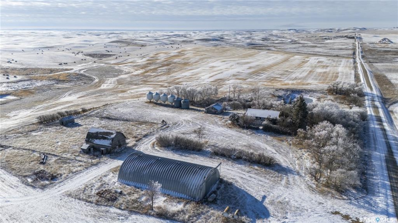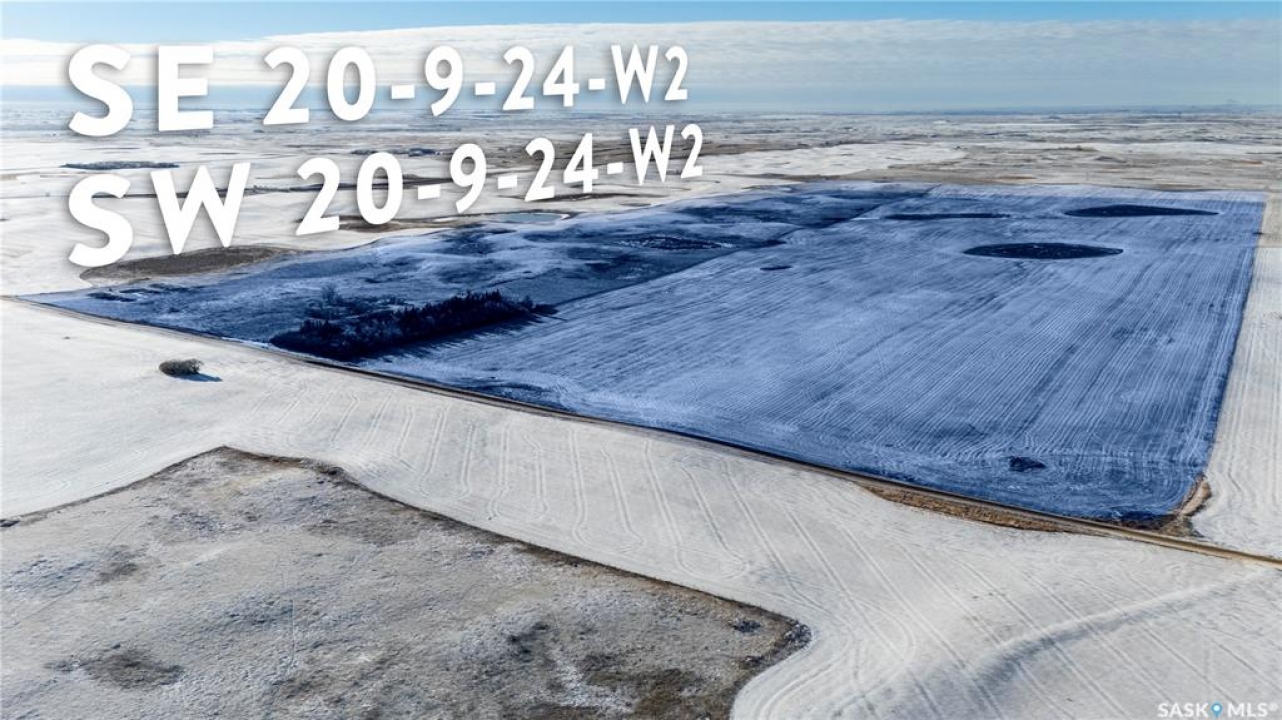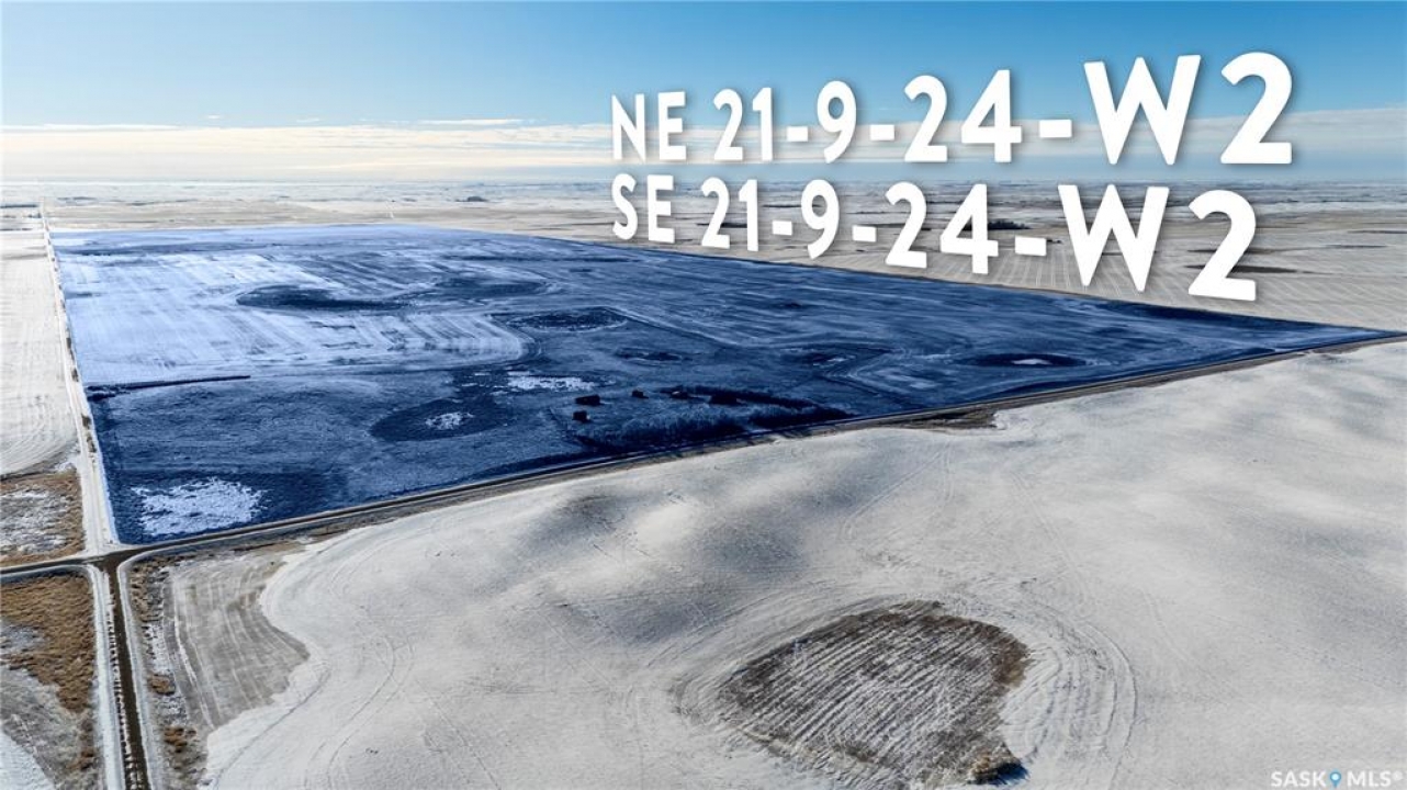 8 Quarters of productive farmland with some pasture in the Kayville/Dahinda, SK area located in the R.M. 's of Key West #70 and Elmsthorpe #100. Owner states 935 cultivated acres, 40 acres tame hay, with the balance of the usable land in native grass. SCIC soil classifications consist of 4 “H”, 3 “J” and 1 “K”. This land has great access with municipal roads to all of the blocks of land. The crop land is leased out for the 2026 crop season providing a 3.2% return of the asking price. There is no lease in place on the tame hay and pasture land and could provide additional revenue if was leased out. The main yard site on the NE 32-9-24 W2 has power to the yard, a steel quonset, six bins total (4 hopper and 2 flat bottom), a bungalow (has not been lived in for several years), and several other outbuildings. There is a second yard site area with an older house and outbuildings with power to the yard on the NE 21-9-24 W2. Asking Price Breakdown: $2,515.10/Titled Acre. Outlines are an approximation.