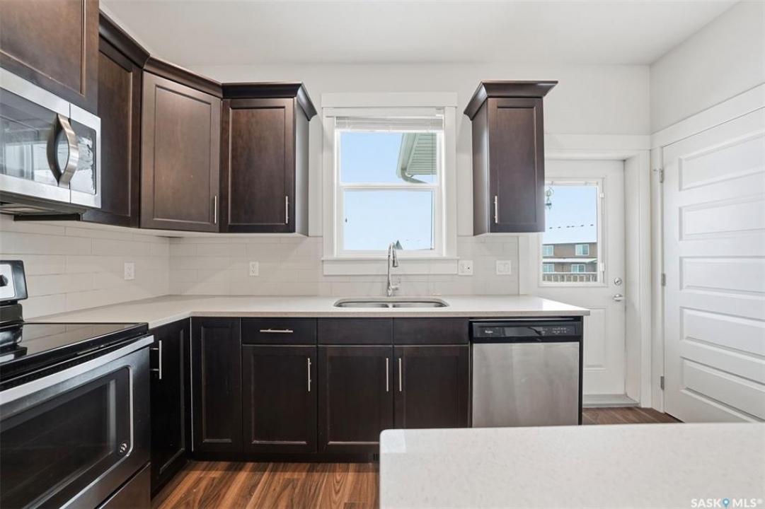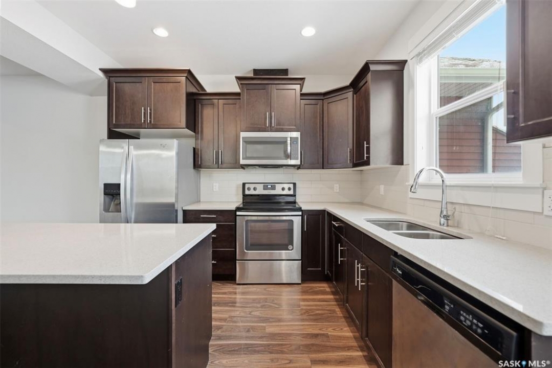 Welcome to this bright and spacious home featuring 9-ft ceilings and recent updates that make it show exceptionally well. The main floor offers an open great-room design with a chef-style kitchen that includes a walk-in pantry, soft-close cabinets, quartz countertops, a tiled backsplash, and stainless steel appliances, flowing into a cozy living area with a natural gas fireplace. There is a two piece powder rom on the main living area as well. Upstairs are three bedrooms and two bathrooms, including a primary suite with a walk-in closet and relaxing ensuite, plus convenient nearby laundry. The heated tandem garage provides extra parking and storage, while outside, the fenced backyard, patio, and upper balcony back directly onto a beautiful green-space park with walking paths. All appliances are included, and the location is close to schools, trails, amenities, and the Legends Golf Course, offering comfort, style, and convenience in one.
