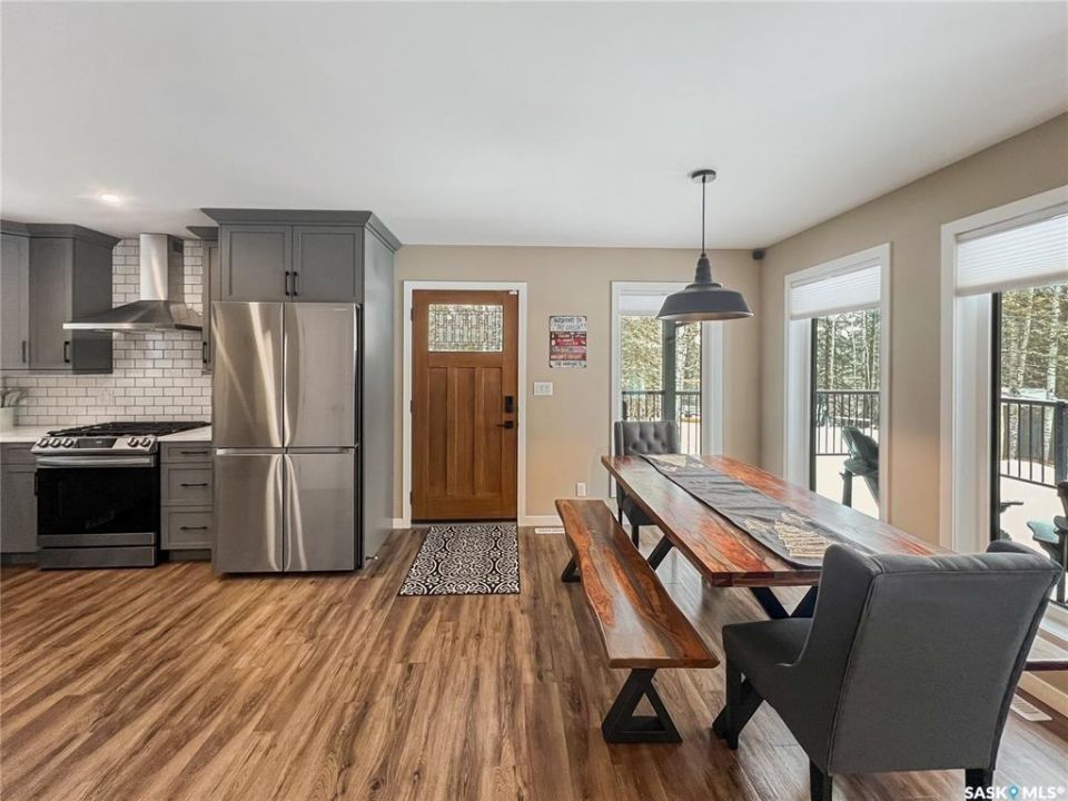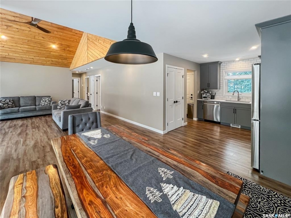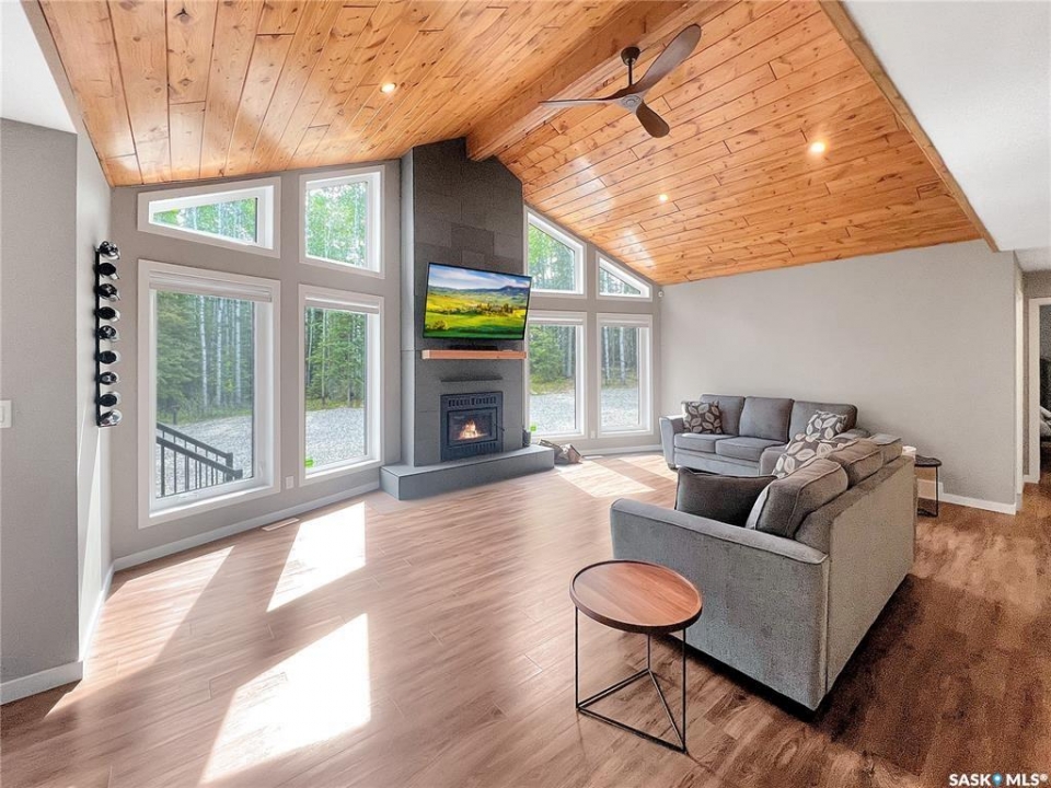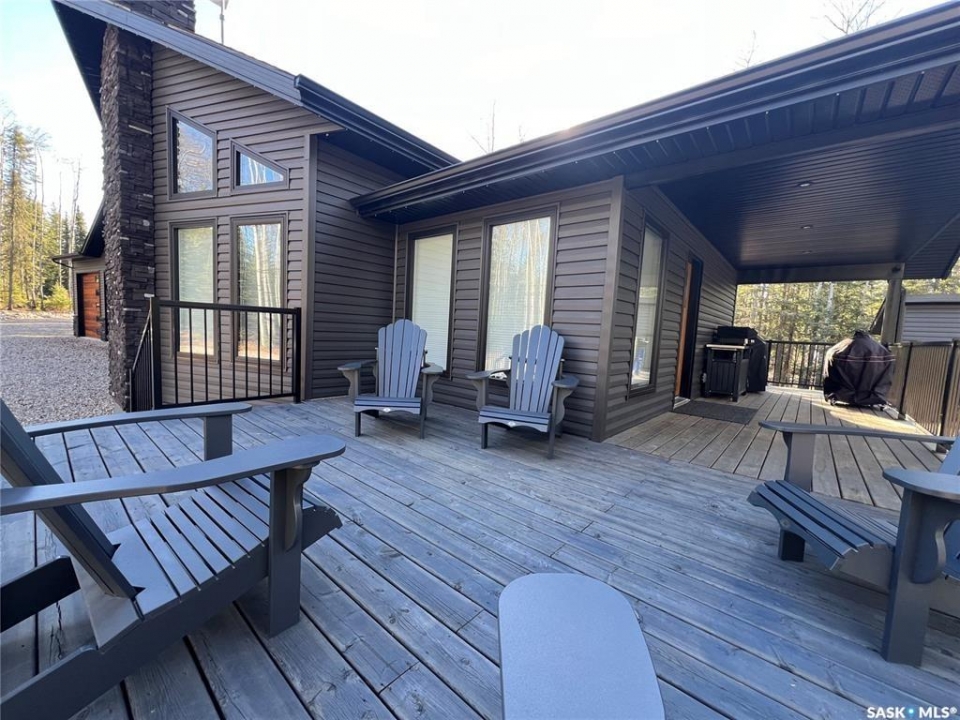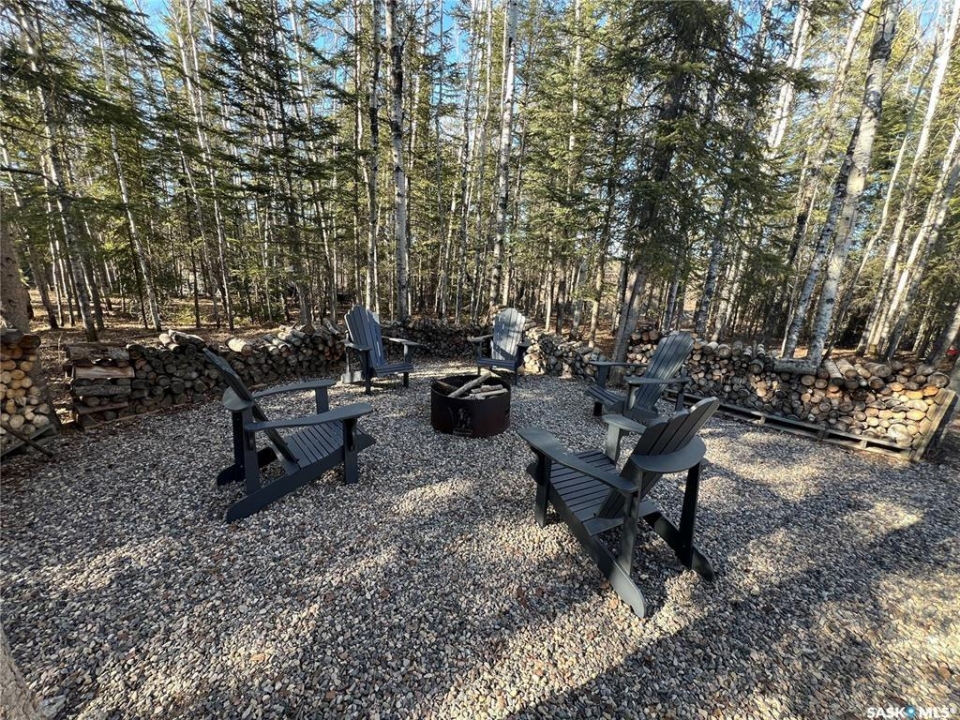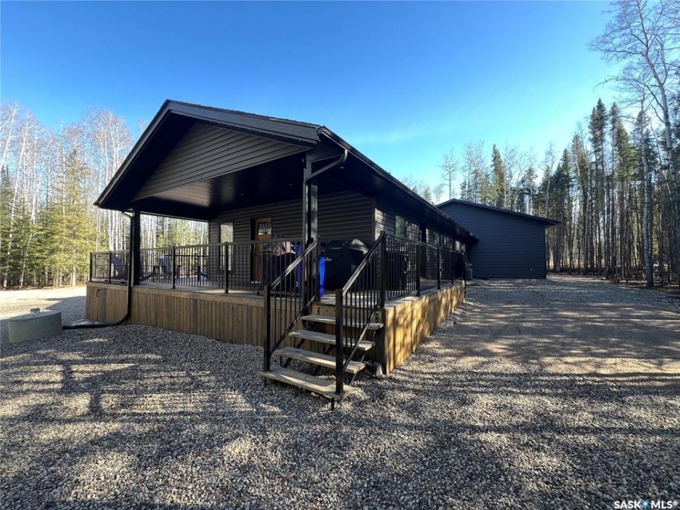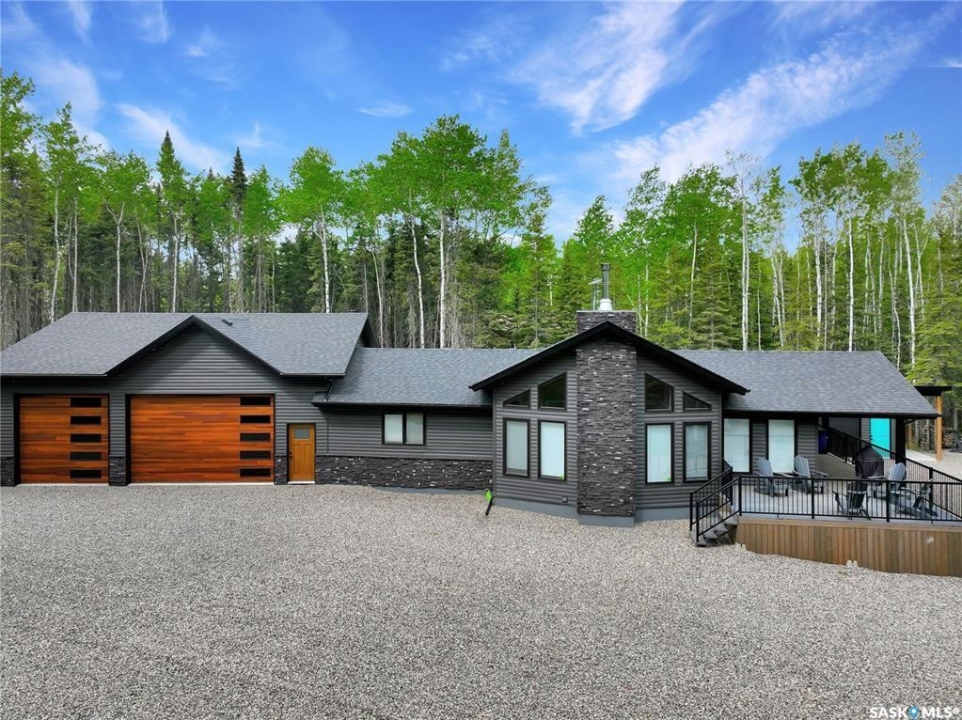 Private & secluded with the Ultimate Garage!!! This well-crafted bungalow provides a calm, secluded escape from everyday noise. Located on 1.32acre landscaped yard, this home offers 3 bedrooms, a full bathroom, and an impressive 36' x 40' triple attached garage. The home has an open floor plan with a well thought out kitchen featuring, quartz counter tops, soft close cabinets, gas range, and large pantry. Large windows flood the spacious living and dining room with an abundance of natural light. The stunning living room boasts a wood fireplace with a stone backdrop, complemented by a vaulted pine ceiling. Two additional nice sized bedrooms & fresh 4pc bathroom. The generously sized master bedroom features a convenient walk-through closet leading to a private 3-piece ensuite. Main floor laundry and mudroom. The stunning garage, completed in 2022, spans an impressive 36'X40' and boasts a hutch bed perfect for hosting extra company, 2-piece bathroom, wood fireplace, bar table & chairs, fridge, and counter area-all heated by a Natural Gas furnace. Finished with vinyl plank flooring throughout, a sleek black metal ceiling, and pine finishing touches, it epitomizes the ultimate man cave experience. Other notable features include: turn-Key, video surveillance, a delightful outdoor space complete with sheds, fenced garden area, an awesome outside bar, with roll up door, cover deck area & quartz bar table all with access to fire pit area with ample firewood, 2 electrified RV sites for company, a covered deck, central air-conditioning, 2X1100 gallon water tanks, 1400gallon septic and a gated driveway ensuring security and privacy. Explore hiking trails, go wildlife watching, or simply unwind in the tranquility of the forest. Don't miss out on this incredible opportunity to own a piece of Candle Lake paradise.