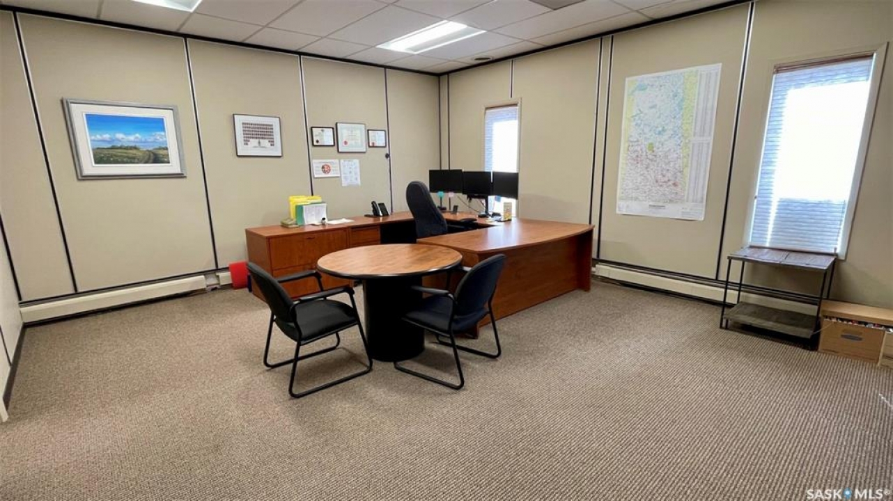 Investment Property with Optional Lease at $40,000/Year – Flexible Opportunity in Biggar This 5,100 sq. ft. office building in the heart of Biggar offers an outstanding investment opportunity, with the seller willing to lease the property at $40,000/year for a 3-year term, with an option to renew. This structure provides immediate cash flow, a stable long-term tenant, and attractive returns for investors seeking income-producing commercial real estate in a strong agricultural region. Biggar has recently completed a $7.5 million revitalization of its downtown, modernizing infrastructure, streetscapes, lighting, and commercial-area amenities. This significant municipal investment is contributing to increased economic activity, higher business engagement, and renewed commercial interest, enhancing the long-term strength and stability of the town for outside investors. The building includes 8 private offices, a large boardroom, reception area, kitchen, technology room, two bathrooms, two rear storage rooms, and a warehouse with an overhead door. Solid concrete block construction, paved parking, upgraded electrical, lighting, and flooring, and a flexible interior layout make this a turnkey commercial space with low ongoing maintenance requirements. While ideally positioned for an investor, the property also suits owner-occupiers requiring office, professional, service, or mixed-use space. Vacant possession can be provided. Located on 3rd Avenue West (C1 zoning) with excellent visibility and convenient access, this property offers both reliable income potential and functional commercial space in one of Saskatchewan's most active and forward-looking regional centres.
