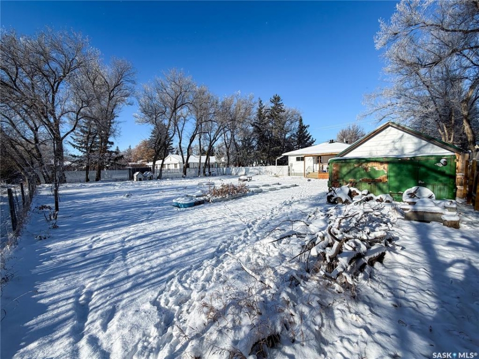 Welcome to 610 Railway Street in Eastend — a charming 4-bedroom, 2-bathroom bungalow with stunning backyard views and a lifestyle rooted in peace, space, and small-town charm. Set on a generous 15,000 sq. ft. lot with no back neighbours, this 1,070 sq. ft. home offers direct access to walking trails and scenic views of the old railway line — a rare combination that gives you both privacy and natural beauty right out your back door. With a single detached garage and two separate driveways—one on each side of the home—you'll have more than enough space for parking, guests, or extra vehicles. Step inside to a sun-soaked main floor living room with plenty of natural light, setting the tone for a warm and welcoming layout. To the right, you'll find the kitchen and dining area, complete with a built-in china cabinet and stainless steel appliances, including a gas stove (2017) and fridge (2021). The cabinetry offers abundant storage, and the dining space is ideal for everyday meals or hosting loved ones. The main floor also includes two well-sized bedrooms and a 4-piece bathroom, making for a practical and cozy layout. Downstairs, the fully developed basement adds two additional bedrooms, a renovated 3-piece bathroom (2022), and a spacious family room with a newly installed gas fireplace (2024) — perfect for keeping warm and comfortable even during power outage. You'll also find a high-efficiency furnace (2017), newer water heater (approx. 2020), cold storage, large storage room, and laundry area with washer & dryer (2018) — ticking all the boxes for practical daily living. The backyard is a dream for gardeners, pet lovers, and families alike. With a newer veranda(2023), raised garden beds (2023), a storage shed, and firepit, this outdoor space offers tons of room to relax, play, or grow your own food. Gated access from both sides of the property and a gate at the back make the yard as functional as it is beautiful. Updated metal roof on home & garage in 2023.