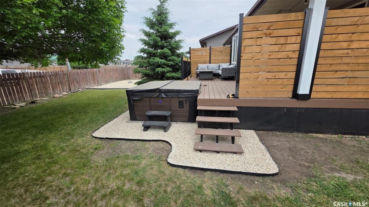 Welcome to this well-maintained 1,172 sq. ft. bungalow, built in 1986 and located in a highly desirable neighbourhood near many amenities. Move-in ready and inviting, this home allows you to simply bring your belongings, settle in, and enjoy. Offering five bedrooms and two bathrooms, the home provides plenty of space for families or anyone needing extra room. The main floor features a bright and spacious kitchen with an abundance of white cabinetry, stainless steel appliances, and a centre island that comfortably seats three to four people. The adjoining dining area offers easy access to the backyard through a patio door that leads to an updated composite deck with privacy walls, warm patio lighting, and a hot tub directly off the deck—perfect for relaxing evenings or entertaining guests. The fully finished basement includes plush carpeting, a large family room, two well-sized bedrooms, a full bathroom, and laundry located in the utility area. Throughout the home you'll find generous closet space, adding to its overall functionality and convenience. Outside, the landscaped and fully fenced yard features a dedicated firepit area and back alley access with enough room to build a second garage if desired. Additional highlights include direct access to the attached garage and a concrete driveway. This property is the complete package—comfortable, updated, and ideally situated. Book your showing today and experience everything this home has to offer.