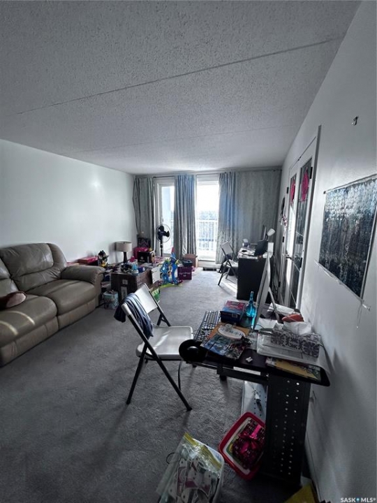 Top floor condo unit located in The Sunset Towers. Building offers an inviting atmosphere and residents have access to an amenities room directly off the lobby. Unit has a spacious living room with large sliding doors to the west facing balcony with an abundance of natural light. French doors lead to a bedroom that could also be used as an office. Kitchen features newer vinyl plank flooring and stainless steel appliances which are included. Unit also offers a second bedroom, 4 piece bathroom and in suite storage. Laundry is conveniently located across the hall for easy access. Located close to all north end amenities including a grocery store, restaurants and mall.