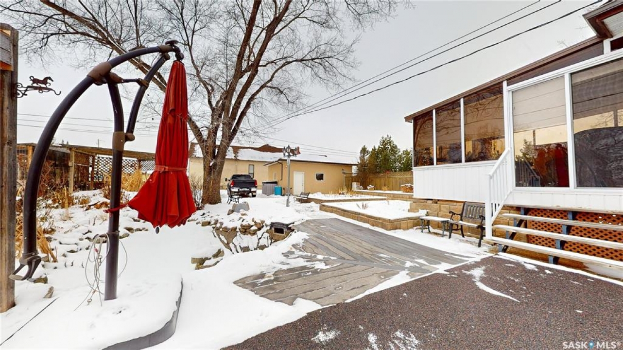 This exceptional property sits on a rare double corner lot and features a 24' × 18' shop with in-floor heat, a double detached garage with a rubber-paved double drive, RV parking, a pond, a greenhouse, and beautifully established garden spaces that are perfect for growing your own produce or enjoying vibrant seasonal blooms. The meticulously maintained yard also includes a rubber-paved patio, offering a wonderful spot to relax and take in the surroundings. Inside, the home offers a beautifully updated kitchen with a movable island, a unique garbage/recycling drawer, and a large pull-out pantry, along with a bright, spacious living room and a cozy sunroom with a gas fireplace. The main floor includes three bedrooms (one currently used as an office), a three-piece bathroom, and a welcoming front entry with ample closet space. The lower level adds even more versatility with a fourth bedroom, a comfortable family room, 3 piece bath, a large laundry area, generous under-stair storage, and a dedicated workshop room. This truly is a property that has it all—inside and out.