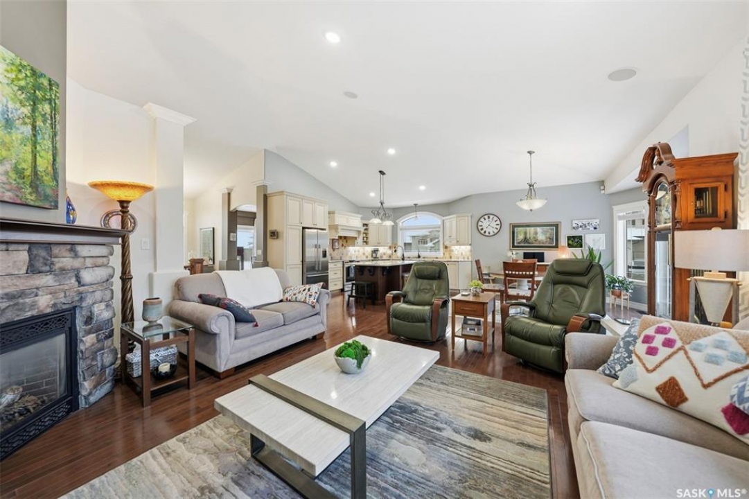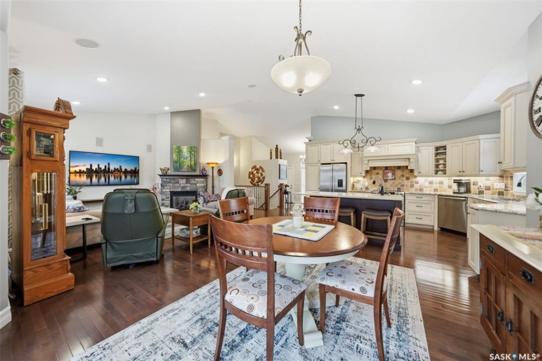 Welcome to 1202 Beechmont View in exclusive Briarwood! This stunning executive style bungalow offers the location, lifestyle and beauty you've been waiting for! Enjoy the comfort and convenience of the open concept main floor with vaulted ceilings, gas fireplace in living room and spacious eating nook with patio access. The kitchen is stunning with its warm cream toned cabinets, granite counters, custom hood fan and island with seating. The formal front dining room features large windows and will be your favourite space to entertain family and friends. Down the hall are 2 bedrooms, including the spacious primary with double sinks, walk-in shower and heated floors. Laundry and access to the double attached garage complete the main floor. The basement offers an excellent floor plan with a large family room with a gas fireplace and dry bar, 2 large bedrooms + a den, as well a full bath and storage. This impeccable home offers beautiful street appeal with a stucco and stone exterior, mature landscaping and large deck with glass railing. If you've been waiting for the perfect bungalow on a cul-de-sac in the desirable neighbourhood, call your realtor to see this home for yourself -- you will not be disappointed!
