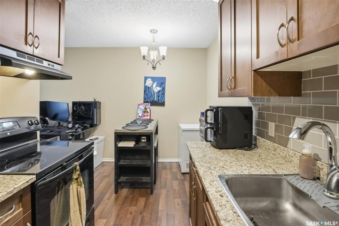 Welcome to the Lexington building in Lawson Heights! This updated 1-bedroom apartment condo located on 2nd floor has been tastefully updated. Kitchen boasts newer cabinets, granite countertops, a stylish tile backsplash, Enjoy the convenience of in-suite laundry with newer ventless washer/dryer combo unit. The large bedroom provides ample space for relaxation, and there is plenty of storage throughout the suite. This pet-friendly building allows pets with restrictions. One electrified parking stall is included, adding to the convenience. Quick possession is possible. Close to Lawson Heights Mall that has most amenities within walking distance.
