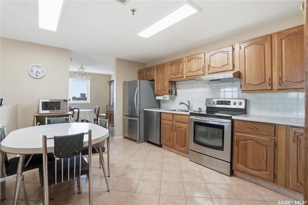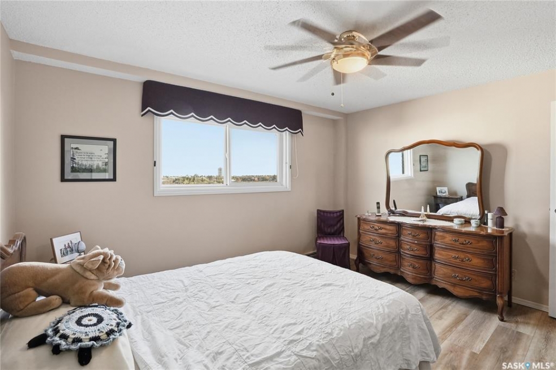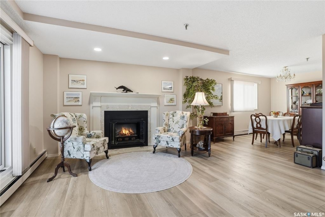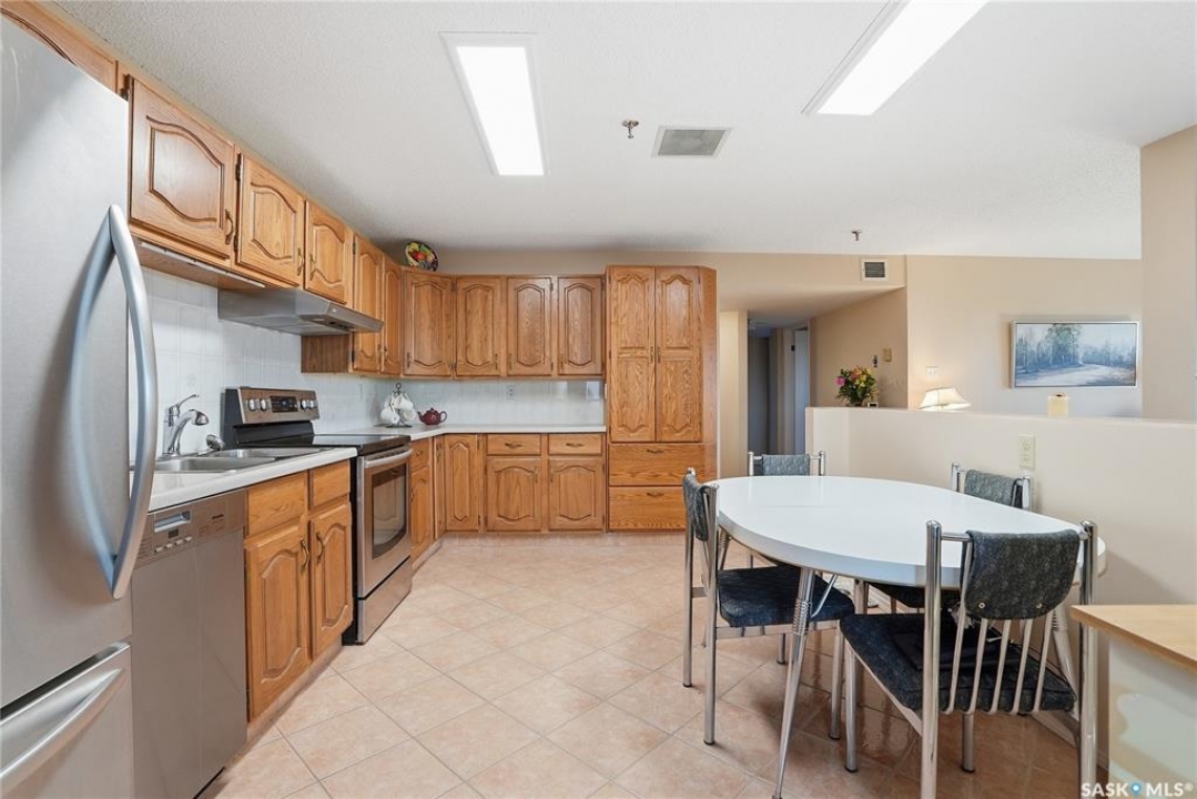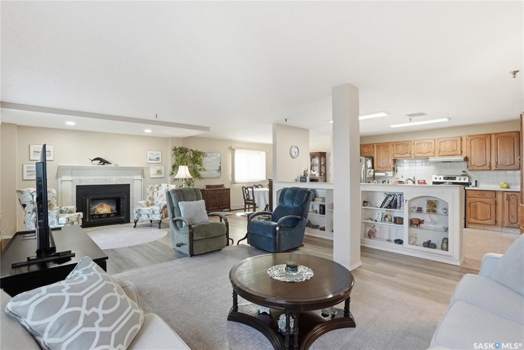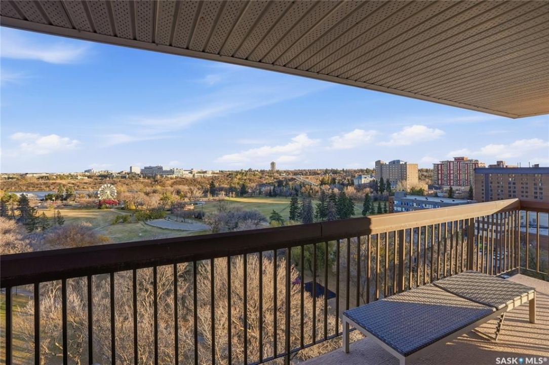 Welcome to unit 1003 – 510 5th Ave North located in the heart of Saskatoon's desirable City Park neighborhood! This condo greets you with plenty of natural light flowing, a functional layout, and spectacular views overlooking Kinsmen Park! Step into your open concept living area, with laminate flooring, sliding glass door to your balcony with picturesque park views, gas fireplace against a tiled mantle, and recessed lighting. Your kitchen provides ample oak cabinetry, tiled backsplash, stainless steel appliances including fridge, stove, dishwasher and hood fan. Open to your formal dining space with a chandelier for a touch of elegance. Your king accommodating primary bedroom features a walk-through closet leading you to your 3-pc ensuite with glass shower and modern vanity. Second bedroom + a den, as well as a 4-pc bath with tile surround tub, a storage room with freezer and laundry hookup, completes this unit! The Discovery Park complex has it all – including an indoor pool, sauna, hot tub, fitness area, amenities room and library! With an unmatched location, only steps away from City Hospital, quick access to the U of S, downtown and our beautiful South Saskatchewan River, this is one you won't want to miss!