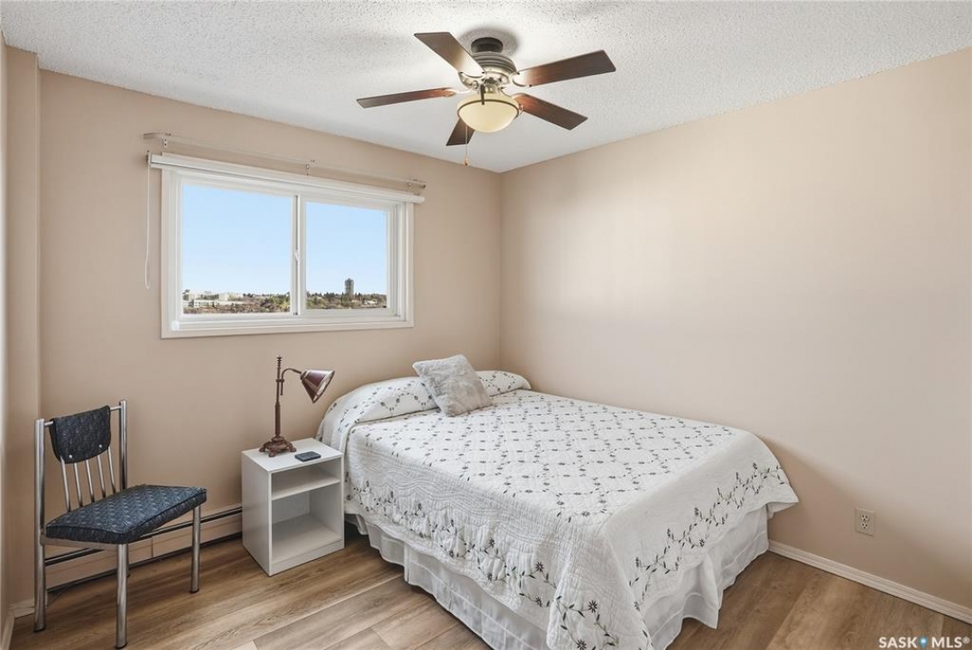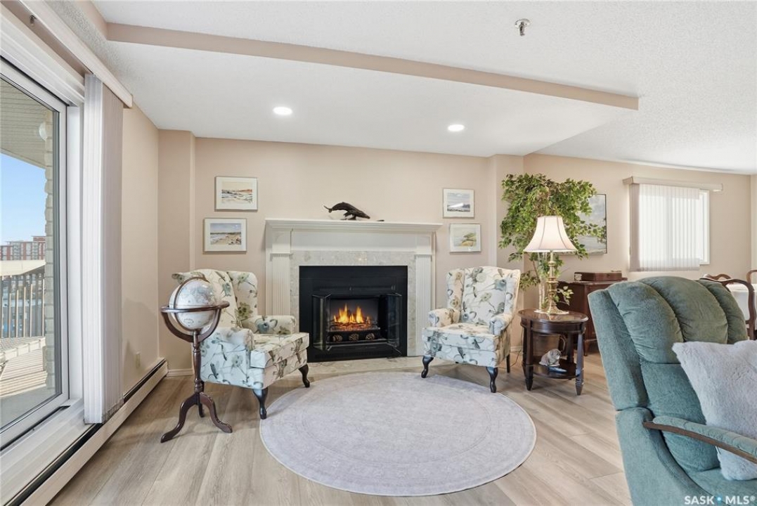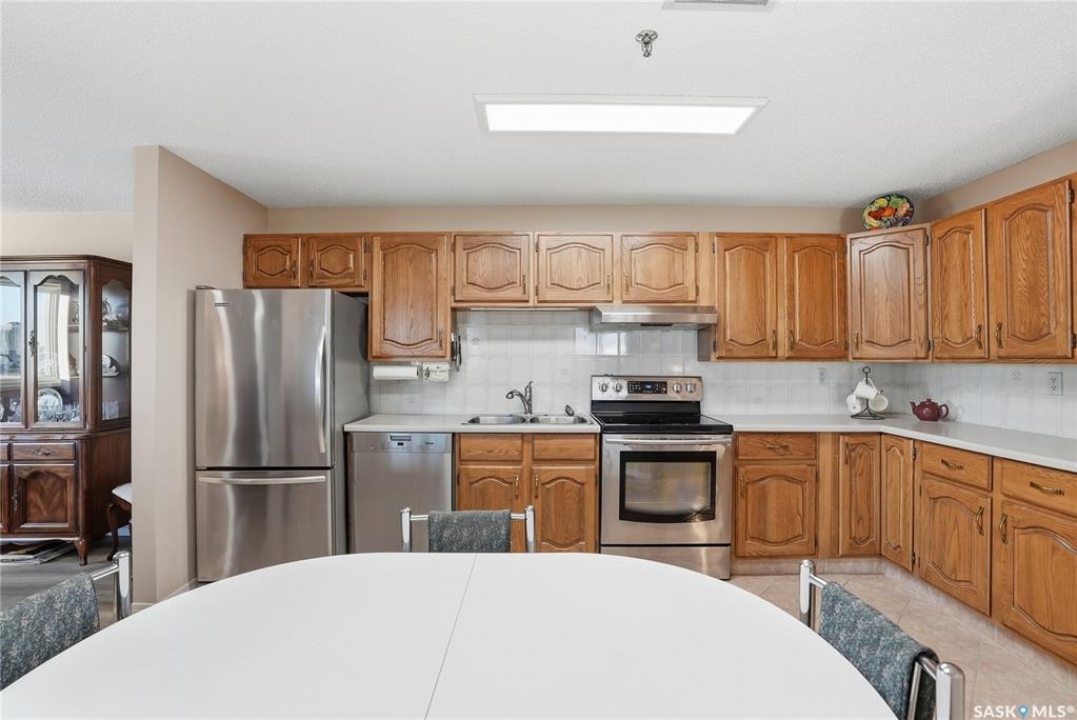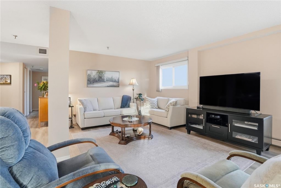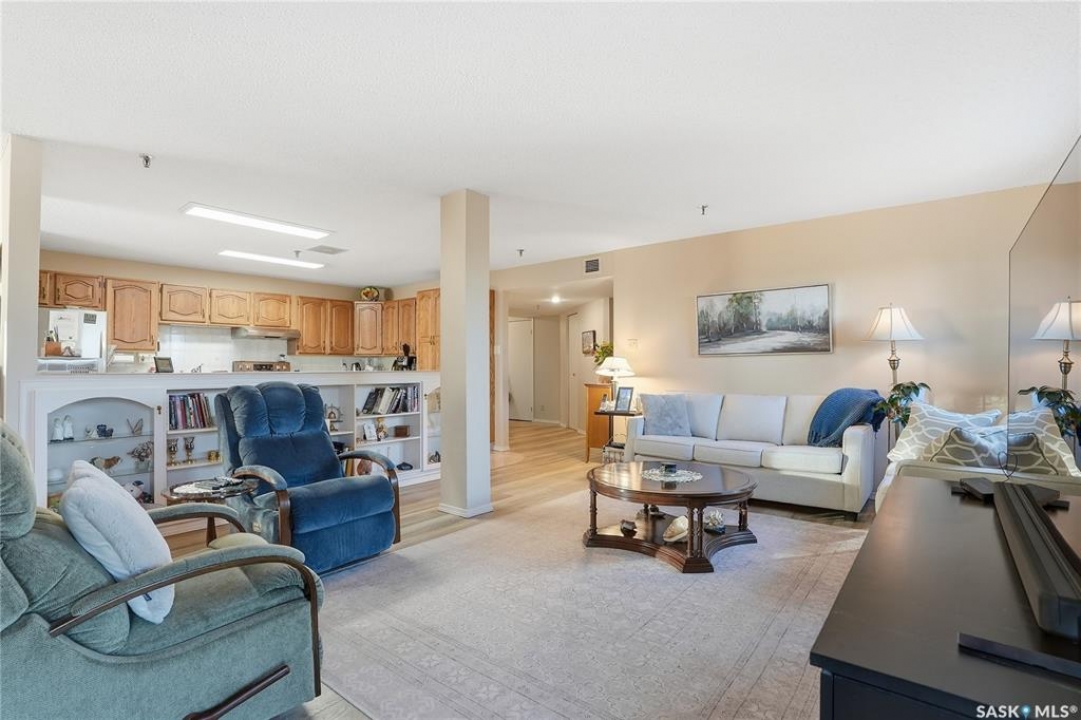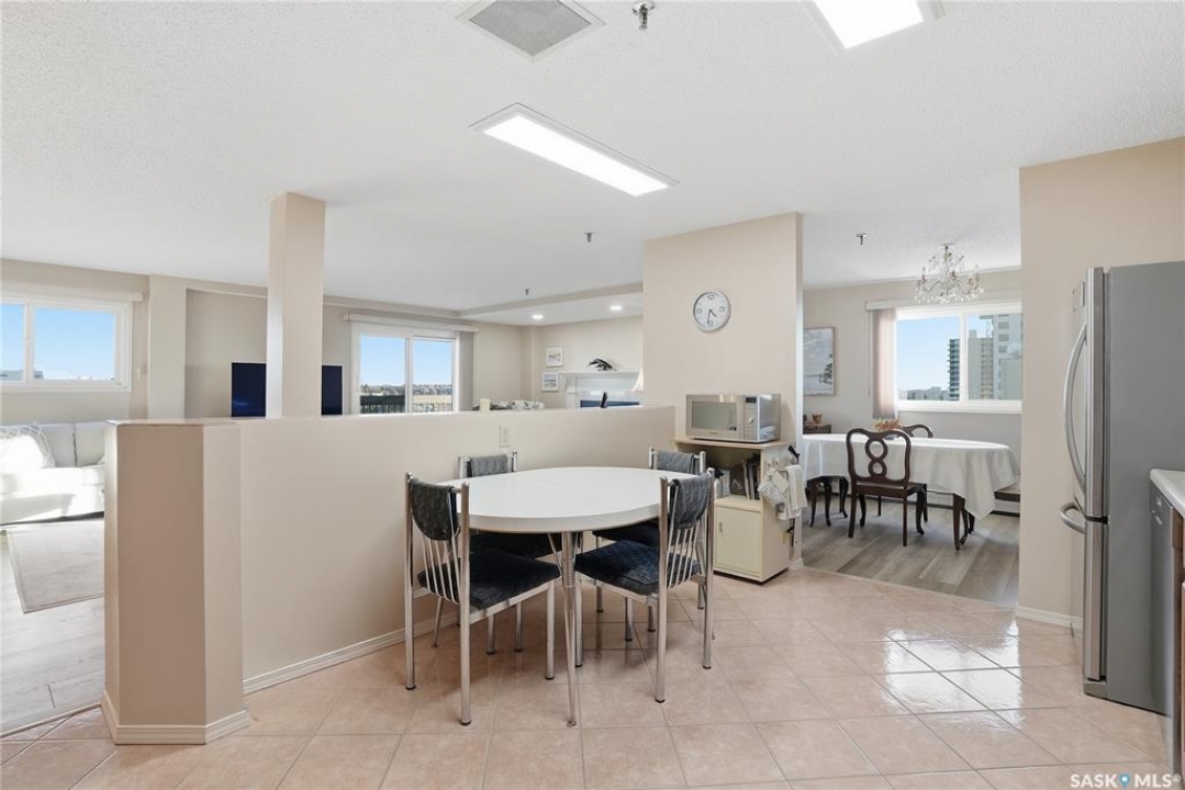 Welcome to unit 1003 – 510 5th Ave North located in the heart of Saskatoon's desirable City Park neighborhood! This condo greets you with plenty of natural light flowing, a functional layout, and spectacular views overlooking Kinsmen Park! Step into your open concept living area, with laminate flooring, sliding glass door to your balcony with picturesque park views, gas fireplace against a tiled mantle, and recessed lighting. Your kitchen provides ample oak cabinetry, tiled backsplash, stainless steel appliances including fridge, stove, dishwasher and hood fan. Open to your formal dining space with a chandelier for a touch of elegance. Your king accommodating primary bedroom features a walk-through closet leading you to your 3-pc ensuite with glass shower and modern vanity. Second bedroom + a den, as well as a 4-pc bath with tile surround tub, a storage room with freezer and laundry hookup, completes this unit! The Discovery Park complex has it all – including an indoor pool, sauna, hot tub, fitness area, amenities room and library! With an unmatched location, only steps away from City Hospital, quick access to the U of S, downtown and our beautiful South Saskatchewan River, this is one you won't want to miss!