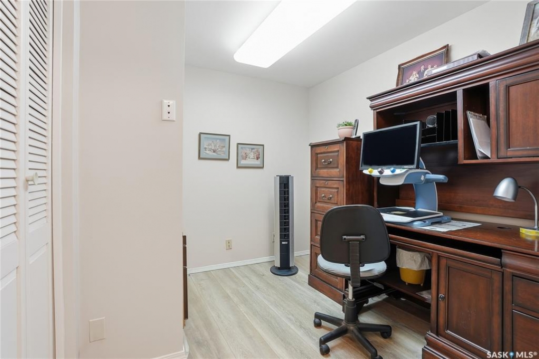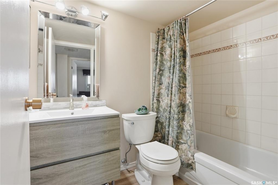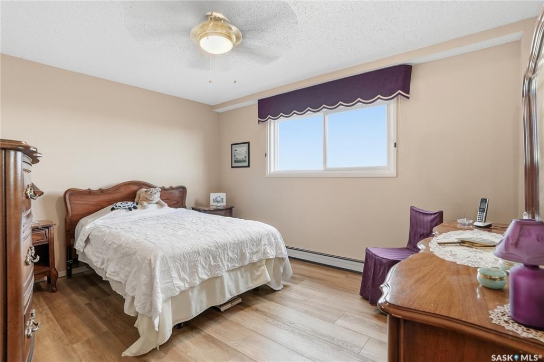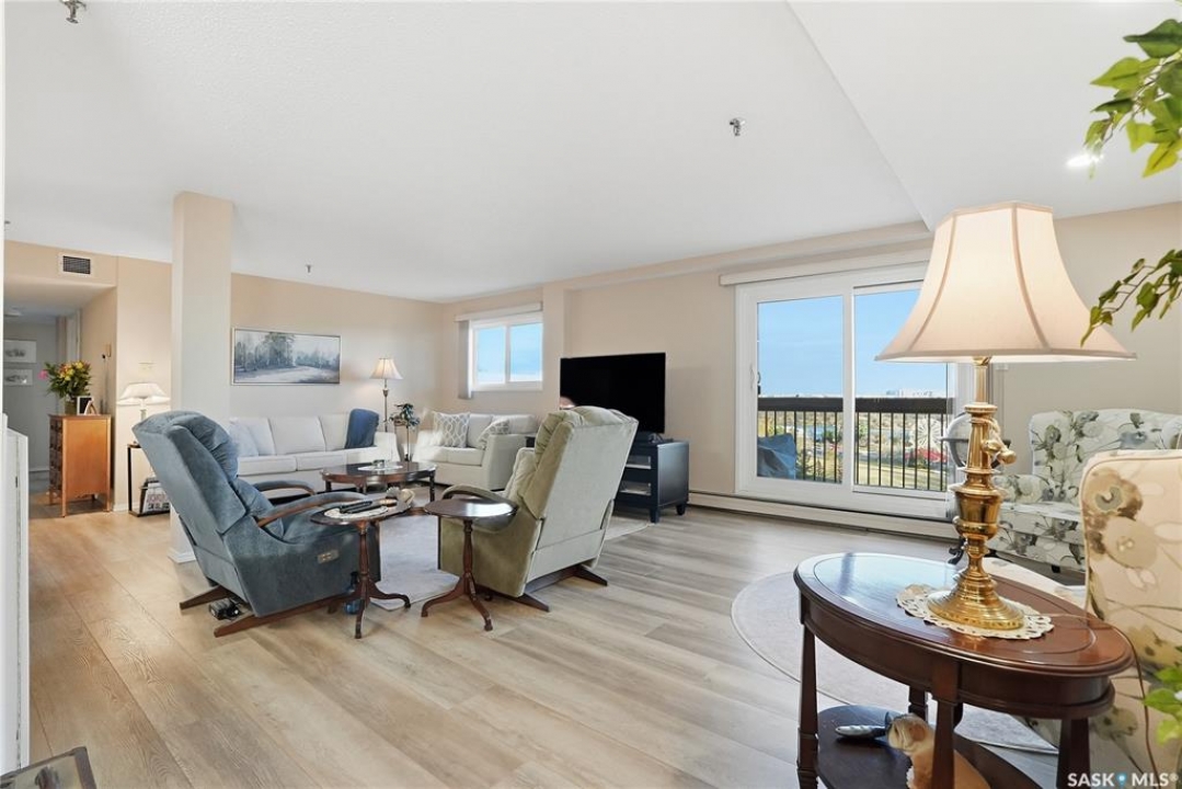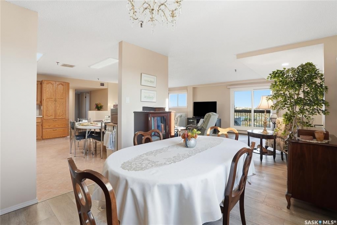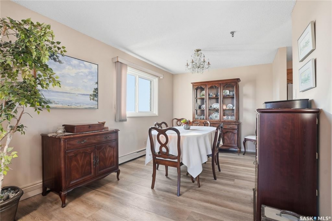 Welcome to unit 1003 – 510 5th Ave North located in the heart of Saskatoon's desirable City Park neighborhood! This condo greets you with plenty of natural light flowing, a functional layout, and spectacular views overlooking Kinsmen Park! Step into your open concept living area, with laminate flooring, sliding glass door to your balcony with picturesque park views, gas fireplace against a tiled mantle, and recessed lighting. Your kitchen provides ample oak cabinetry, tiled backsplash, stainless steel appliances including fridge, stove, dishwasher and hood fan. Open to your formal dining space with a chandelier for a touch of elegance. Your king accommodating primary bedroom features a walk-through closet leading you to your 3-pc ensuite with glass shower and modern vanity. Second bedroom + a den, as well as a 4-pc bath with tile surround tub, a storage room with freezer and laundry hookup, completes this unit! The Discovery Park complex has it all – including an indoor pool, sauna, hot tub, fitness area, amenities room and library! With an unmatched location, only steps away from City Hospital, quick access to the U of S, downtown and our beautiful South Saskatchewan River, this is one you won't want to miss!