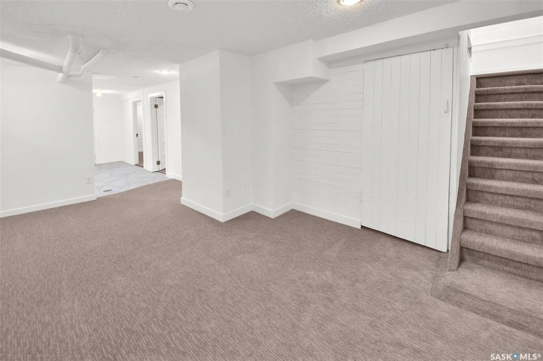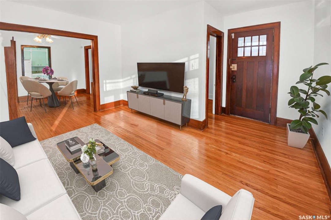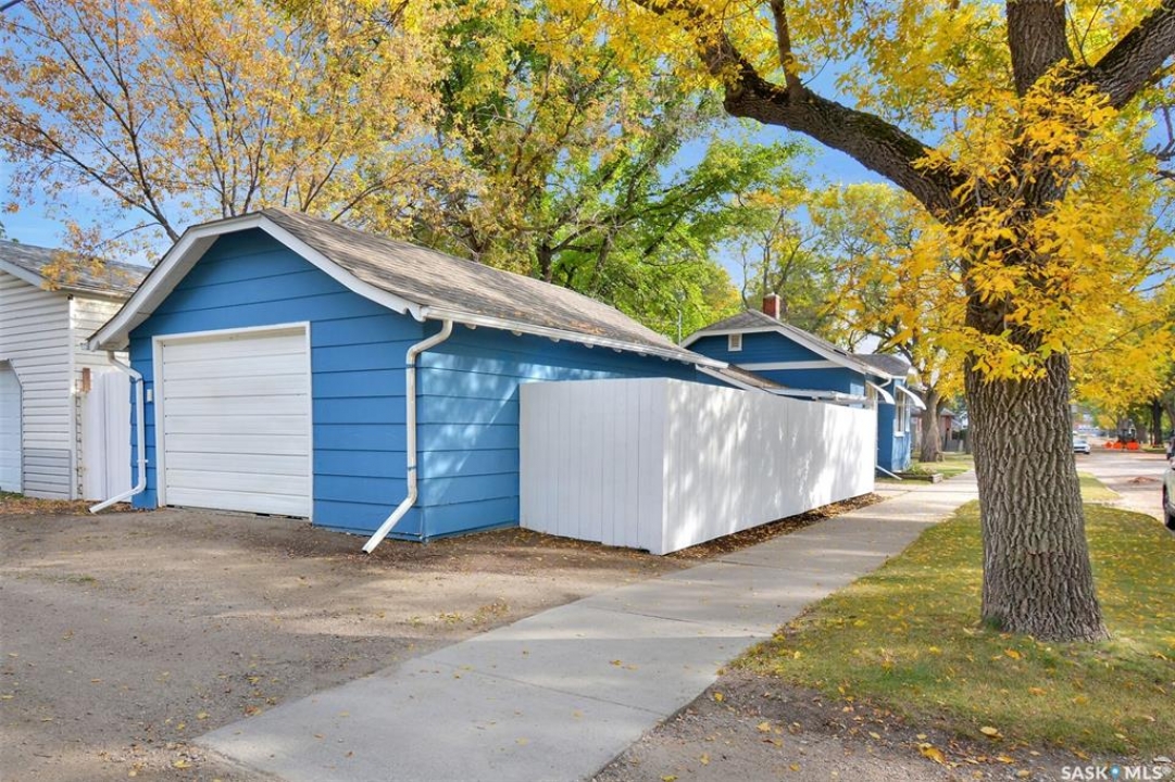 Welcome to this bright and charming character home located in Caswell Hill. This gem is close to two elementary schools, a high school, Sask. Polytechnic and Ashworth Holmes Park with a new playground, paddling pool, and lawn bowling. This home is within walking distance of a grocery store, bakeries, churches, a library, and many shops. The front of the home greets you with a large L-shaped closed-in porch. Inside, you enter on original hardwood floors that flow through the front entry, living room, dining room, hall, and bedrooms. The main floor has original woodwork, some stained and some painted. Many original light fixtures luminate this home, and original doors add to the character of this home. The living room and dining room are flooded with natural light from the large picture windows. The kitchen has freshly painted cabinets, a new quartz countertop with a new sink and faucet. A new refrigerator and vinyl floor add to the updates. The bath has been completely updated from top to bottom. The primary bedroom offers 2 closets, and the 2nd bedroom has a unique pass-through feature that adds to the charm of this home. Enter the side entrance to a mudroom with new vinyl floor and an entrance to a space that can be converted into another living space, office, or bedroom. The basement has been completely renovated with paint, light fixtures, and flooring, and offers a family room, den, bedroom, laundry room with a new washer and dryer, and has many storage closets. This house has been completely painted inside and out, has upgraded shingles, some newer windows, landscaping, a custom brick patio, and a new fence. The large insulated and boarded single garage offers off-street parking, and the corner lot offers additional parking. All the updates have been mindful and done to keep in line with the character of this beautiful home.