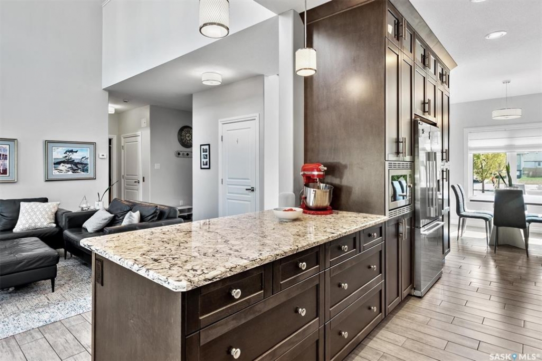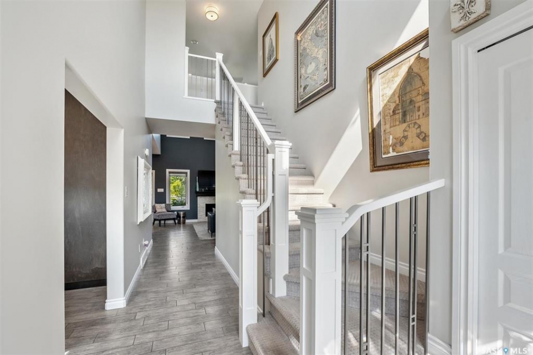Immaculate custom-built home in Warman with Premium finishings designed with wheelchair accessibility in mind. Main Floor: Extra-wide galley kitchen with granite counters, high-end appliances (gas stove/hood fan, double-door fridge/freezer, built-in microwave, dishwasher). Main-floor primary bedroom with walk-in closet and direct access to 3-pc accessible bath. Wide hallways, lever handles, roll-under sinks. Personal 3-stop elevator with access to garage, main, and basement. Second Floor: Second primary bedroom plus bedroom/office. Shared 4-pc bath (reno 2022) with access from both rooms. Basement: Exceptional entertainment space featuring a large family/media room with fireplace, custom shelving, and 10-speaker Dolby Atmos system. High-end wet bar with granite island, dual-drawer dishwasher, drying-rack sink, custom cabinets, and glass wine cellar (300 bottles). Bedroom with built-in queen Murphy bed next to 3-pc bath. Laundry, storage, and utility rooms. Garage: Fully insulated and heated double garage with EV charger and full golf simulator (projector, retractable screen/enclosure). Elevator access. Yard: Low-maintenance landscaping with composite deck, 4-hole putting green, artificial chipping area, extensive patio with multiple seating/BBQ areas, vinyl fencing, large garden boxes with underground sprinklers, and four storage sheds. Accessibility Highlights: Two roll-in showers with grab bars and multi-head fixtures, full turning radius bathrooms, wide hallways/kitchen, extra-wide fence gates, moveable rubber ramp, main-floor bedroom sized for lift use. Updates: Hot water tank (2019), upstairs bath (2022). A must see for any family!