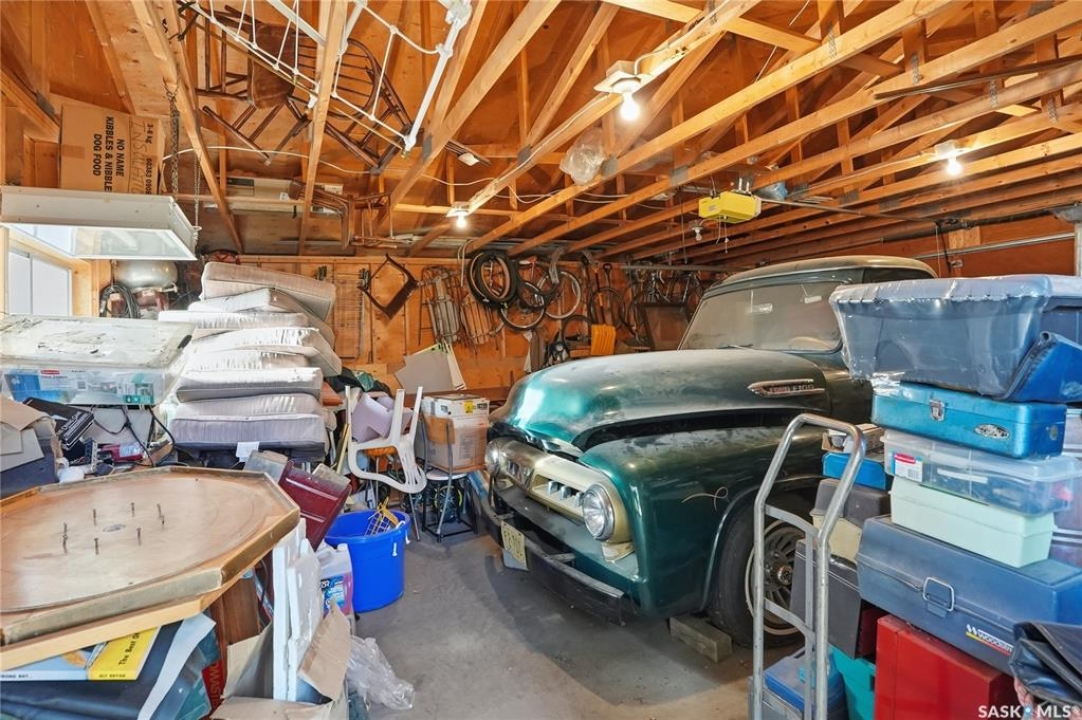 Welcome to 23 John East Avenue, a long-time family home tucked away on a quiet street in Saskatoon's desirable Hudson Bay Park neighbourhood — and yes, it comes with two garages! This charming bungalow is ideally located just steps from Henry Kelsey Park, schools, and all the amenities that make this area so convenient. The main floor features a bright, welcoming layout with a spacious living room, functional kitchen, and good-sized bedrooms. The lower level offers additional living space along with plenty of storage. Outside, you'll find a single 12X30 heated garage, a 24×24 double detached garage and a mature yard. This home is a fantastic opportunity for anyone looking to personalize a well-loved property in a stable, family-friendly neighbourhood.