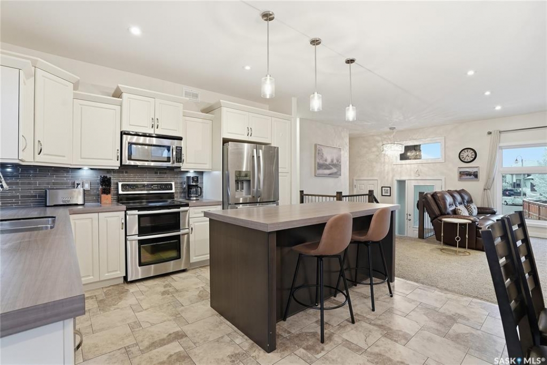 439 Senick Bay offers a rare opportunity to own a spacious raised bungalow in the well-established Stonebridge neighborhood. Situated on a quiet bay, this property combines privacy with proximity to schools, parks, and all the amenities Stonebridge has to offer. Step inside the 1,415 sq. ft. home and you're welcomed by a generous foyer with a walk-in closet. The open-concept main floor features tall ceilings, a bright living room with a cozy fireplace, and a thoughtfully designed kitchen with abundant storage, prep space, and a large island. From the dining area, walk out to the deck overlooking a mature, tree-lined backyard that provides natural privacy. The main floor hosts three bedrooms, including a primary suite with walk-in closet and 3-piece ensuite. A second 3-piece bath and convenient laundry room with ample storage complete the level. Downstairs, oversized windows and tall ceilings make the fully finished basement feel anything but below grade. A spacious family room and play area are complemented by two additional bedrooms, a home office, and a luxurious 4-piece bathroom with walk-in shower and freestanding tub. The utility room adds even more storage options. A heated, fully finished double garage rounds out this impressive property. 439 Senick Bay is a home that blends comfort, functionality, and timeless appeal. Schedule your private showing today.