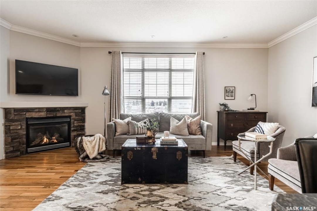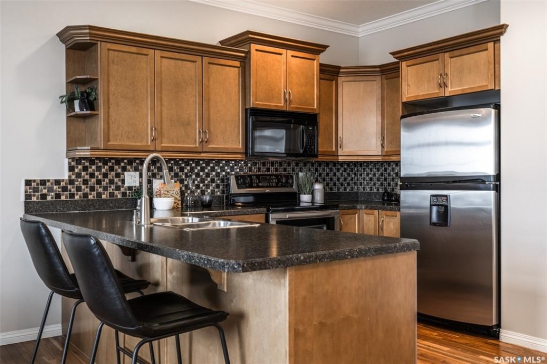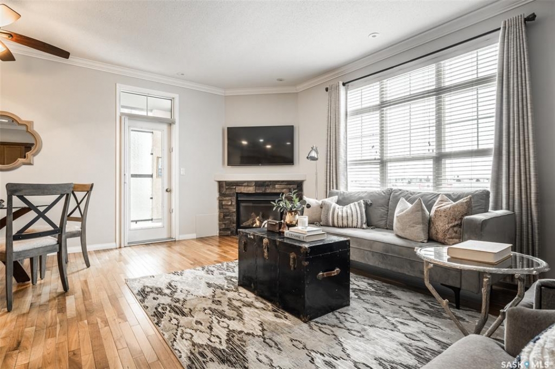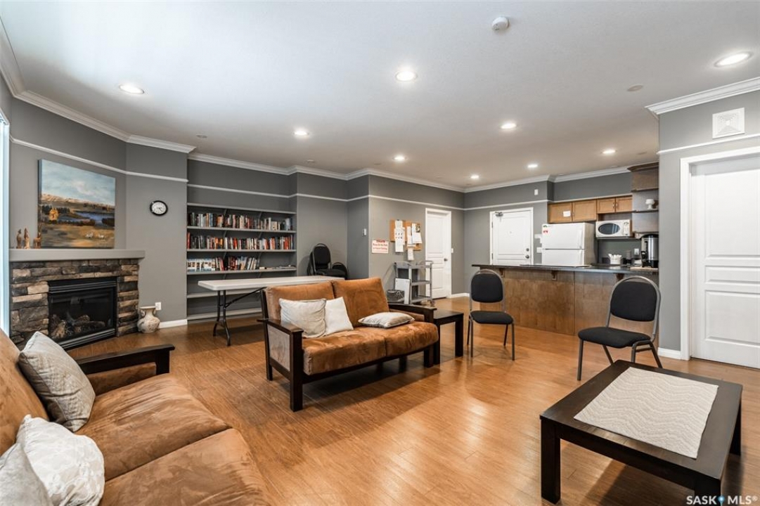 Welcome home to this bright and spacious 2-bedroom, 2-bath condo perfectly situated in highly desirable University Heights. Featuring an updated kitchen with an eat-up peninsula, stainless steel appliances, and tons of cabinetry, this unit delivers both style and function. The open-concept living and dining area is warmed by a gas-burning fireplace and highlighted by large south-facing windows that flood the space with natural light. Step outside to a covered balcony to enjoy the sunshine. Beautiful hardwood floors and freshly painted walls flow throughout the main living areas, adding warmth and continuity. The primary bedroom offers comfort and convenience with a large window, walk-in closet, and a 3-piece ensuite complete with a walk-in shower. The second bedroom is best suited for a twin bed and would make an excellent home office or creative space. Additional perks include in-suite laundry, a generous storage room, and access to an amenities room equipped with a kitchen and fireplace—perfect for hosting gatherings. Leave the car at home and enjoy a less-than-5-minute walk to groceries, restaurants, medical services, and more. Underground parking with extra storage and visitor parking complete this exceptional package. A fantastic opportunity to own in a prime location with everything right at your doorstep!