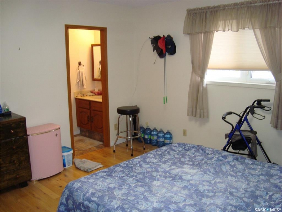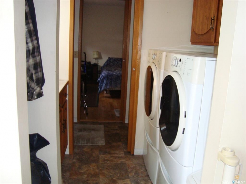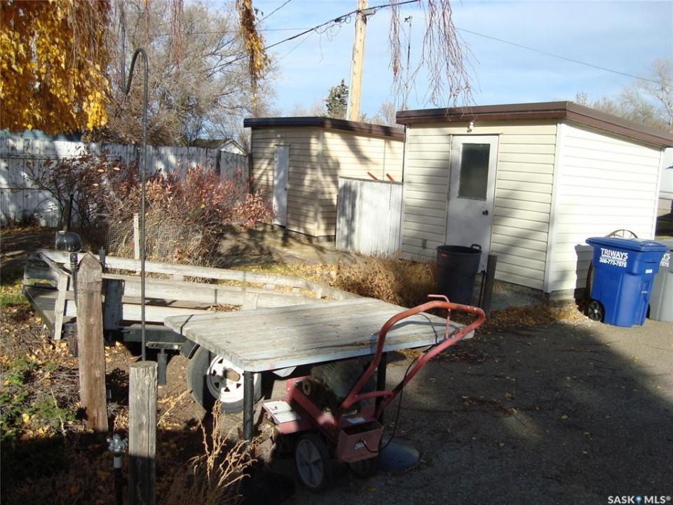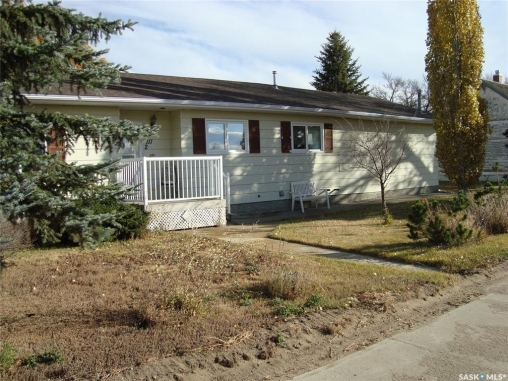 Large bungalow in Kyle, SK., 15 minutes to Sask. Landing Provincial Park and Clearwater Lake. Home has hardwood floors in living room and bedrooms Home has been well taken care of so in very good condition! Large kitchen/dining room, has a large pantry in kitchen, and living room has gas fireplace. Main floor laundry attached to 2 pc bathroom and primary bedroom. Basement is huge with a wet bar, a den, and 4 pc bath. Energy efficient furnace, 200 amp service and all PVC windows are triple pane. Double garage, 10' door, a pit and lift bar, heated and roomy. Outside is large 16' x 28' deck, 2 sheds and garden area. Lots of parking room for RV, etc.. Shingles done in 2022, central air 2023. This home is a fantastic deal!!