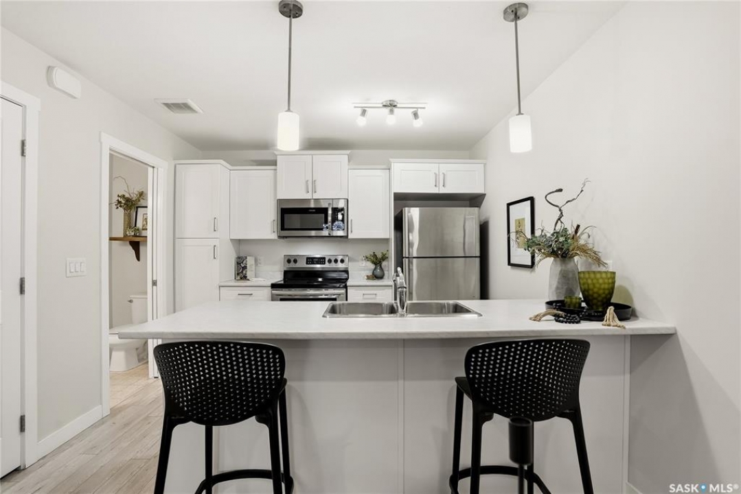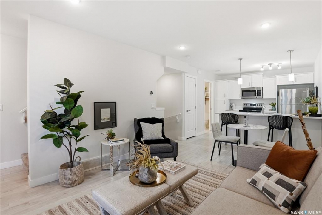 Welcome Home to The Oaks. This modern townhome is big on style, smart on value, and offers all the convenience and comforts you desire. This 1 Bed + Den, 2 Bath townhouse is spacious and bright with a functional and open layout for living large in a right sized floorplan. Main floor features include a well appointed kitchen that is modern yet timeless with ample cabinet and counter space, large peninsula island, and stainless steel appliances; great entertaining space that is open to dining area and living room with large windows and balcony access; plus a 2-pc powder room. Upstairs you'll find the primary bedroom with walk-in closet; dedicated laundry space; versatile den with walk-in closet makes for a great home office or guest space; plus the 4-pc main bath. Comfort features include a spacious and fully insulated attached garage with direct entry; ample storage space; central-air-conditioning for keeping cool; plus a covered balcony for outdoor enjoyment, ideal for morning coffee and evening relaxation. A fantastic Stonebridge location offers easy access in and out, just steps to numerous parks, top rated Public and Catholic Schools, and full range of amenities including gym, groceries, restaurants, medical, fuel, and more. Comfort. Convenience. Modern style. Smart value. This is the townhouse and lifestyle opportunity you've been looking for - book your private showing today.