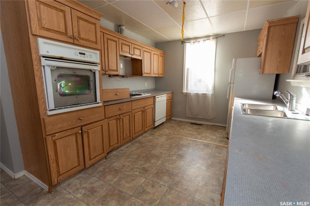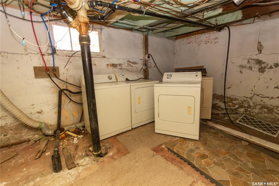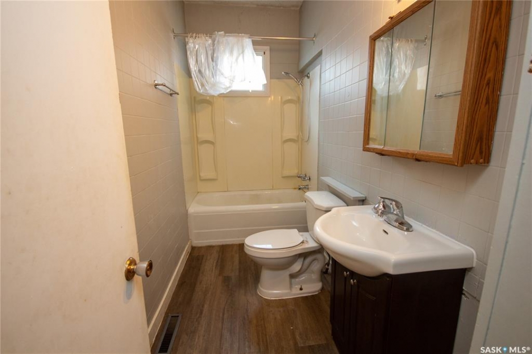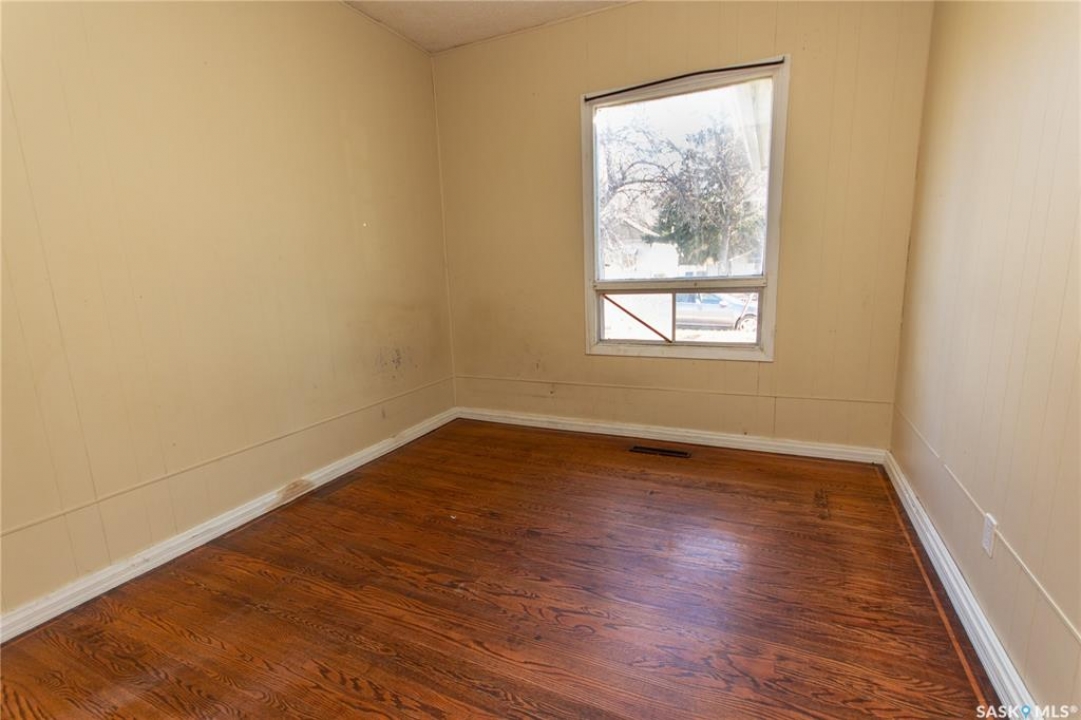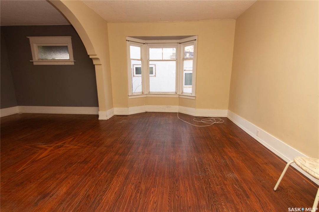 Attention investors! Step into the charm and character of this 1915 gem! From the moment you enter the spacious front porch, you'll appreciate the thoughtful design, providing ample storage. Inside, this 1120 sqft home features stunning hardwood flooring with a unique design that is throughout the living room, dining room & one of the bedrooms. The open-concept living and dining areas are connected by a beautifully detailed archway, adding a touch of elegance and timeless appeal. The galley-style kitchen, located at the back of the home, offers easy access to the backyard—perfect for summer BBQs and outdoor entertaining. You'll also find 3 cozy bedrooms and a 4-piece bathroom. The basement includes a non-regulation suite with easy access through a side entrance, providing flexibility for extended family or potential rental income. This area has also been treated to updated carpeting and includes a kitchen, 4pc bathroom and spacious living area. Outside, enjoy the deck, ideal for outdoor cooking and gathering with friends. The partially fenced backyard includes a storage shed for all your outdoor needs. Additionally, there is a HE furnace ensuring comfort year-round. Any included appliances are in “as is” condition. It's priced so you can refresh this property and truly make it your own! Don't miss this rare opportunity to own a piece of history. Quick possession is possible making this an ideal investment. Call today to book your personal viewing!