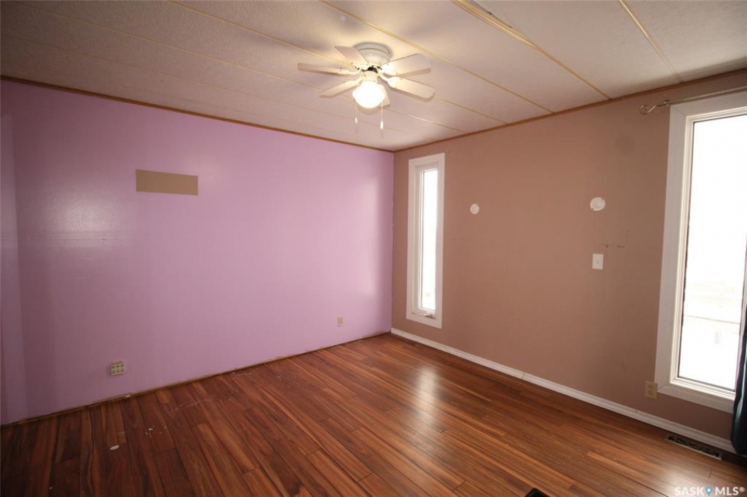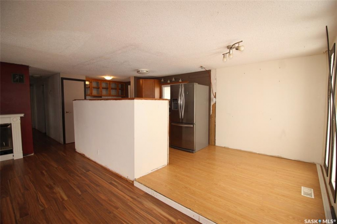 Located on the corner of highway 37 & 13 this acreage is gives you lots of space with all town amenities in walking distance. The home is a fixer upper but has a good basement and lots of potential. The main floor hosts two bedrooms up with two bathrooms. The kitchen, dining and living room are all open so you can entertain and keep conversation alive. The basement has had some rooms being framed, but not complete. There is another 4 pc bath downstairs as well as dedicated laundry space. The back deck looks out to the West to catch the best Sunsets. There is some other outbuildings and room to grow and create a little homestead!