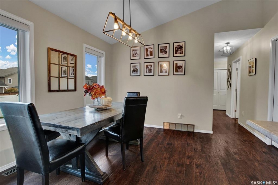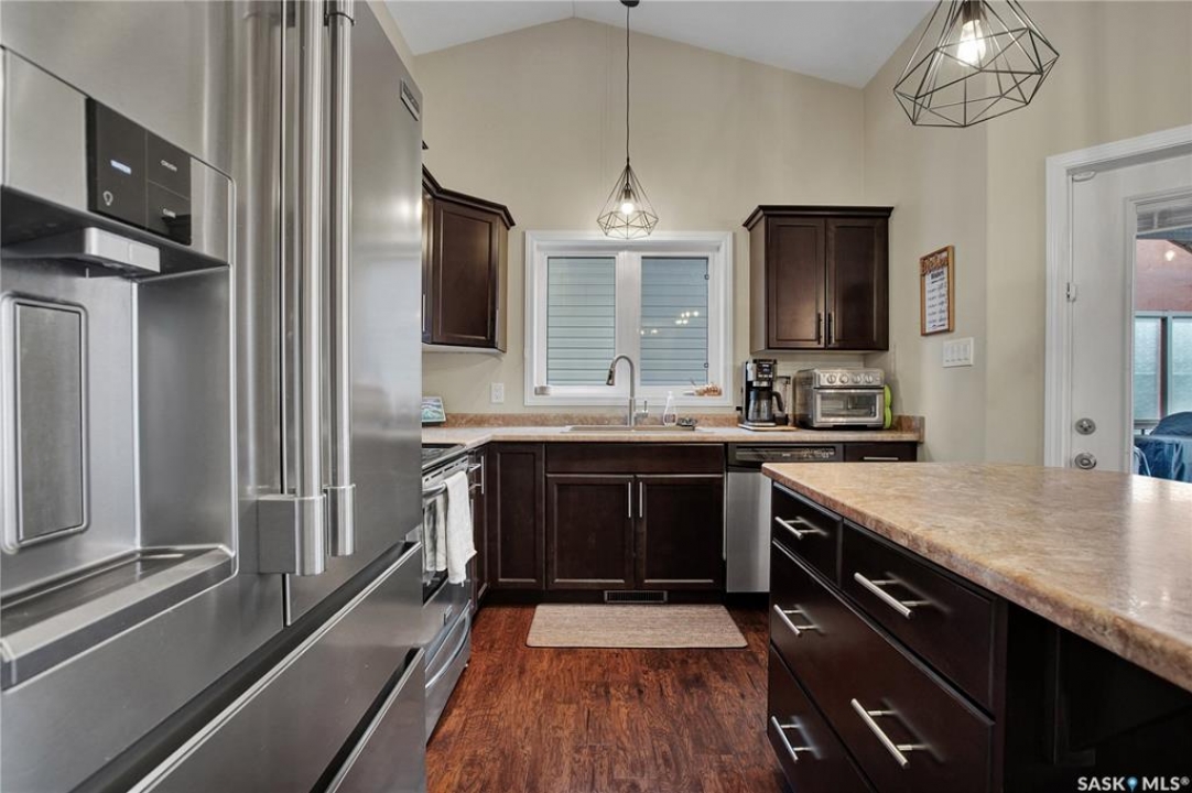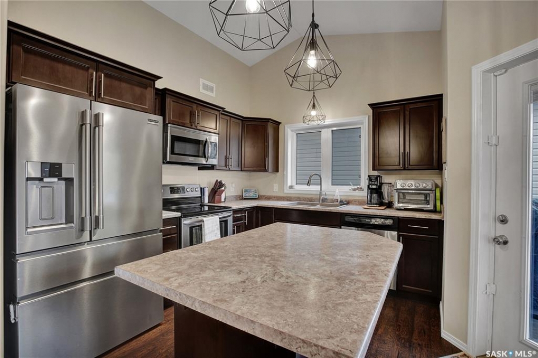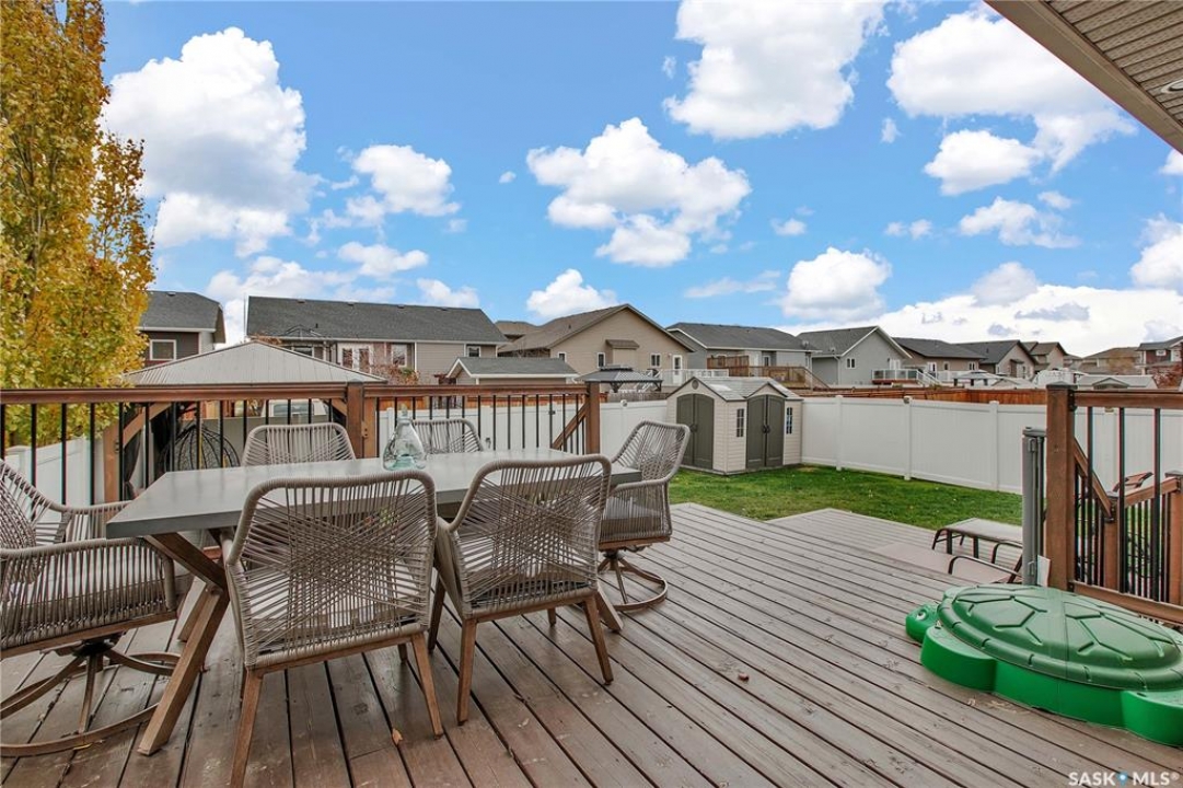 Beautifully updated and move-in ready, this 4-bedroom, 3-bath raised bungalow offers over 2,200 sq. ft. of finished living space designed with family comfort in mind. The main floor features three spacious bedrooms, including a primary suite with walk-in closet and private 3-piece ensuite, plus an updated main bath and convenient laundry. The bright, open living area showcases stylish feature walls and a functional kitchen that flows into the dining space and out to the deck—perfect for BBQs and summer entertaining. Downstairs offers a large family room, a 4th bedroom, full bath with oversized shower, and a new dry bar ideal for movie nights or guests. Outside, enjoy a fully fenced and landscaped yard with gazebo, refinished deck, and storage shed. The heated garage adds year-round convenience, while thoughtful updates inside and out make this home truly turnkey. Located in a family-friendly area within walking distance to amenities and the golf course—this one checks all the boxes!