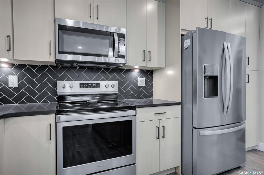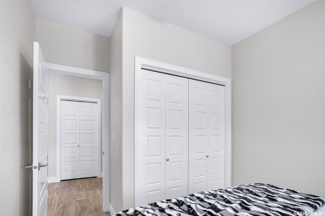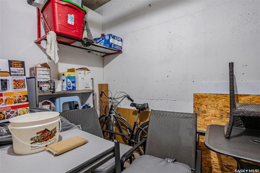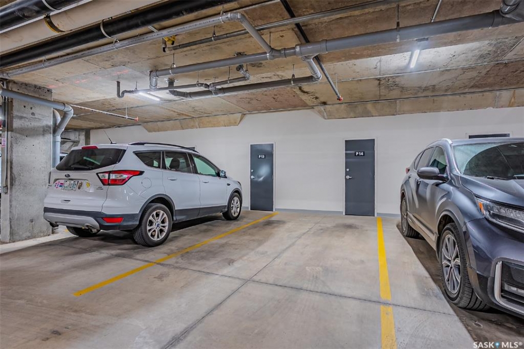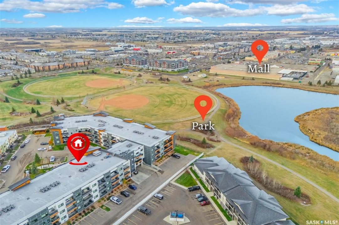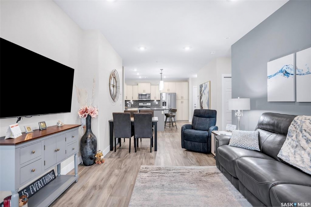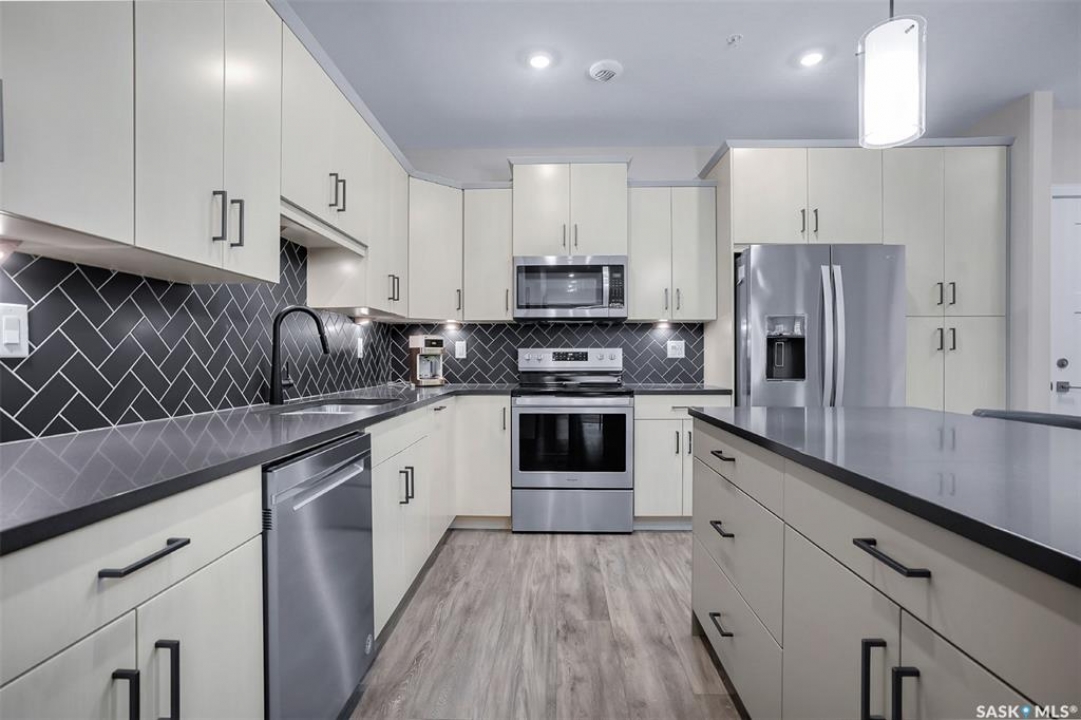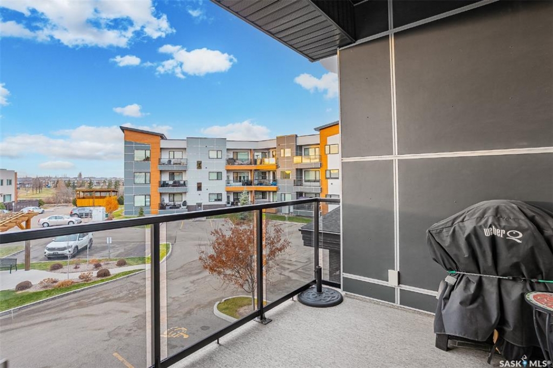 Welcome to modern living in the heart of Stonebridge — a home that feels calm, intentional, and beautifully finished from the moment you step inside. This 1,083 sq. ft. condo offers an airy, open layout with 9-foot ceilings, large windows, and a thoughtful blend of comfort and contemporary style. Barely lived in and showing like new, every inch feels fresh, refined, and move-in ready. The kitchen is the centrepiece of the home: an inviting, well-planned space with a large island (complete with pullout drawers), quartz countertops, tile backsplash, under-cabinet lighting, stainless steel appliances, and an abundance of cabinetry including a built-in pantry. The living area flows seamlessly from here, framed by expansive natural light and opening onto a private covered balcony — the perfect spot for a quiet moment or an evening to unwind. The primary suite is a retreat of its own, offering a generous bedroom, walk-through closet, and a spa-inspired ensuite featuring dual sinks, a walk-in shower, and thoughtful linen storage. On the opposite side of the condo, a second bedroom and full four-piece bathroom create ideal separation for guests, a home office, or a creative workspace. This home also includes central air conditioning, Hunter Douglas window coverings, in-suite laundry, and heated underground parking with a large storage unit. The building itself offers impressive amenities: a well-equipped gym with a wall of windows, a lounge with pool table and shuffleboard, outdoor fire tables, and a private guest suite for visiting family and friends. An added bonus: the stylish, modern furniture can be included — allowing you to move in effortlessly and enjoy the space immediately. Step outside to Peter Zakreski Park with its walking trails, lake, and greenspace, or stroll to nearby cafés, groceries, shops, and services. With quick access to Circle Drive, the rest of the city is only minutes away. Be sure to check out the virtual tour!