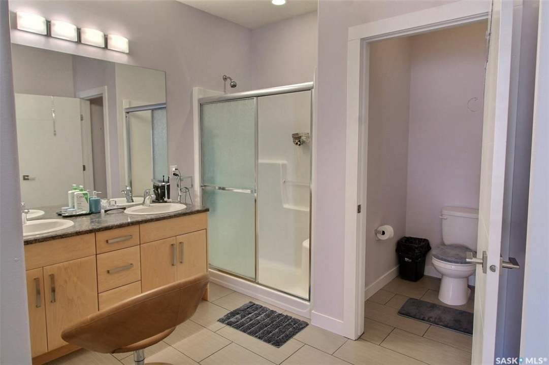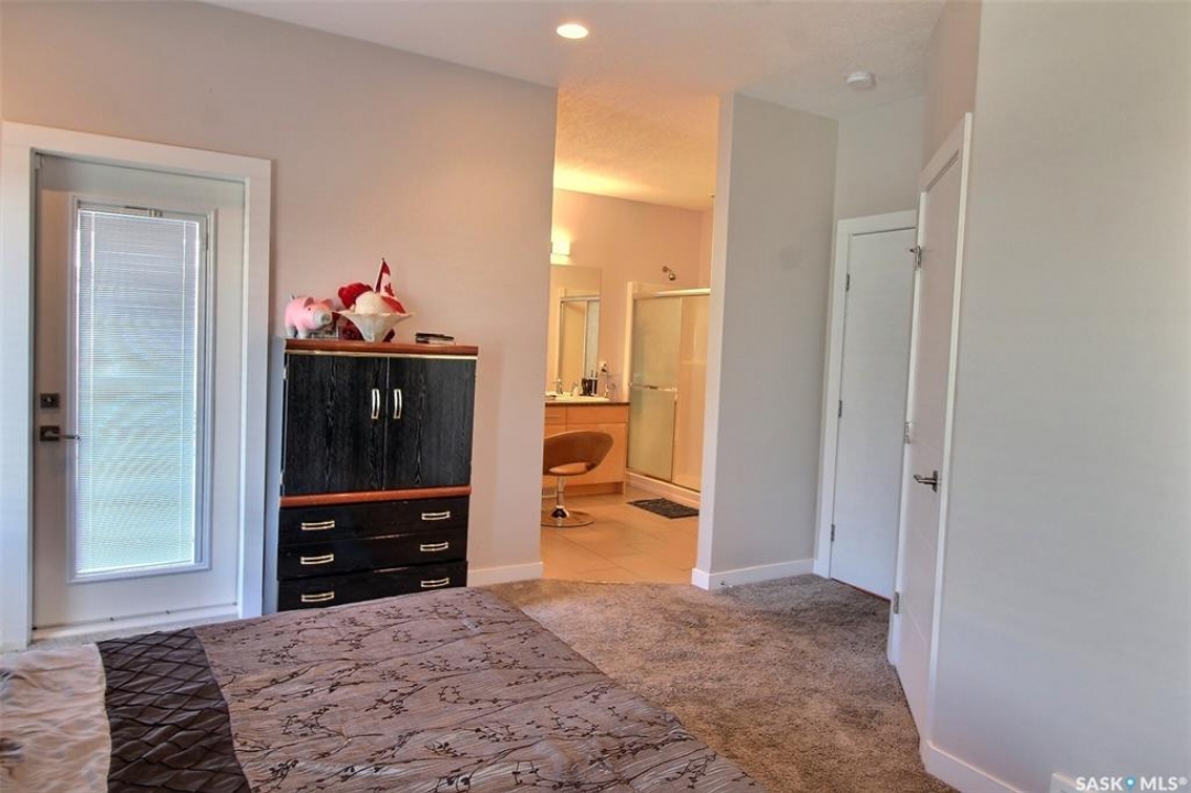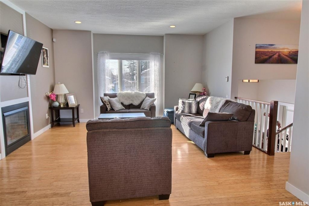 This charming 4-bedroom, 3-bathroom bi-level home is tucked away in a quiet East Flat cul-de-sac. Spanning 1336 square feet, it boasts a heated double garage with direct foyer access. The master bedroom features a walk-in closet, a luxurious 5-piece ensuite, and access to the upper deck. Cozy gas fireplaces enhance both levels. The main floor, adorned with Bamboo hardwood, is ideal for entertaining, offering a stylish kitchen with an island, dining area, and a seamless living room. Step out onto the east-facing covered deck with an NG BBQ hookup. The basement provides extra entertainment space with rock cladded gas fireplace, a wine fridge, cabinets, and counter area. Outside, you'll find a covered ground-level deck, two storage sheds, and a backyard garden. The home also includes central air and an air exchanger for ultimate comfort. Book your private viewing now!