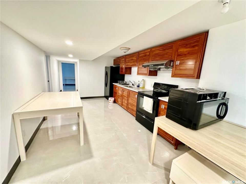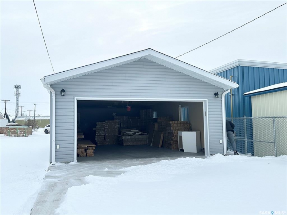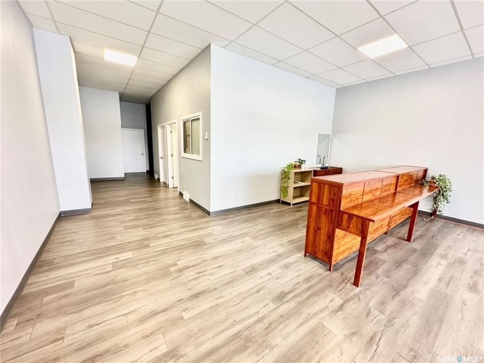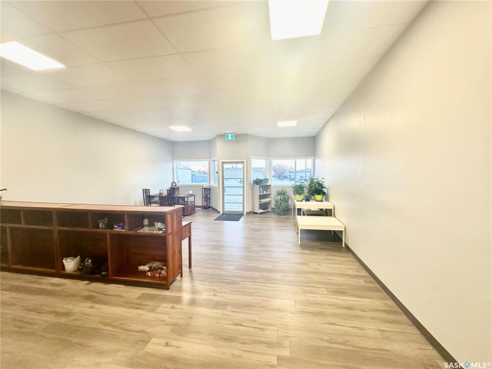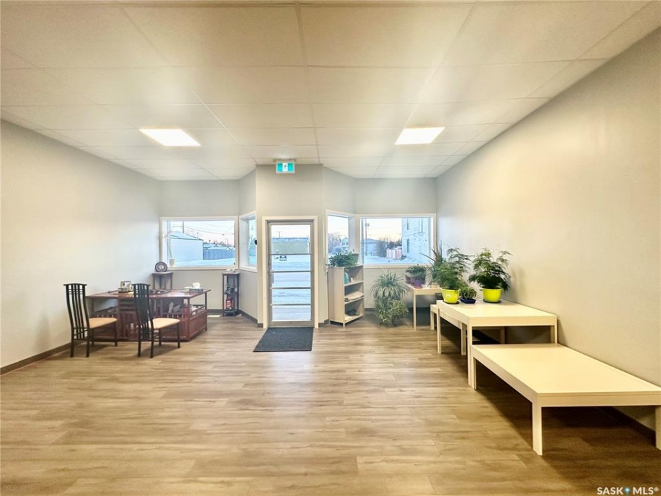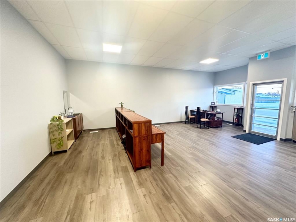 Welcome to this fully renovated commercial gem located in the heart of Dundurn, just a short 20-minute drive south of Saskatoon. With over 2100 sq ft on the main floor, the building encompasses a 1200 sq ft store front reception area featuring a wet bar, two private offices, a 400 sq ft boardroom/living quarter, and a 750 sq ft warehouse/workshop with an overhead door. The large concrete slab in the back is versatile for parking or shipping containers. Professionally renovated, the basement adds an extra 1200 sq ft, offering a self-contained living space with two bedrooms, kitchen, laundry, family room, and a bathroom. High-end aluminum core board built-in cabinets enhance the interior. The entire property has undergone a comprehensive renovation, including newer flooring, bathrooms, shingles, mechanical systems, water heater, and furnace, with the seller investing over $200k in upgrades over the past few years. This expansive space presents numerous possibilities, making it suitable for retail, office, medical, warehouse, or small business ventures. Don't miss the opportunity to explore the potential of this meticulously renovated property, offering both space and versatility for various business endeavors.