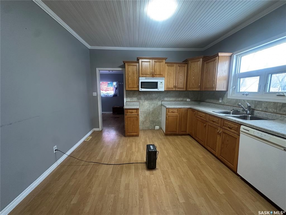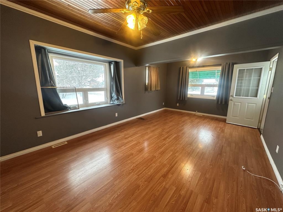 Welcome to this charming 890sq.ft. bungalow, offering comfortable living in a bright and welcoming layout. The home features two bedrooms and a 4PC bathroom, making it an excellent choice for first-time buyers, downsizers or anyone seeking an easy-to-maintain property. You'll appreciate the spacious kitchen, offering plenty of room for cooking and dining, which flows seamlessly into the large, naturally lit living room lined with windows. The generous front entrance provides ample room for coats, boots and everyday storage. The finished basement adds valuable additional space for a family room, and storage. The laundry is also located in the basement. Outside, the property features a single detached garage and a large, partially fenced yard. Taxes for 2025 are $1,644.33.