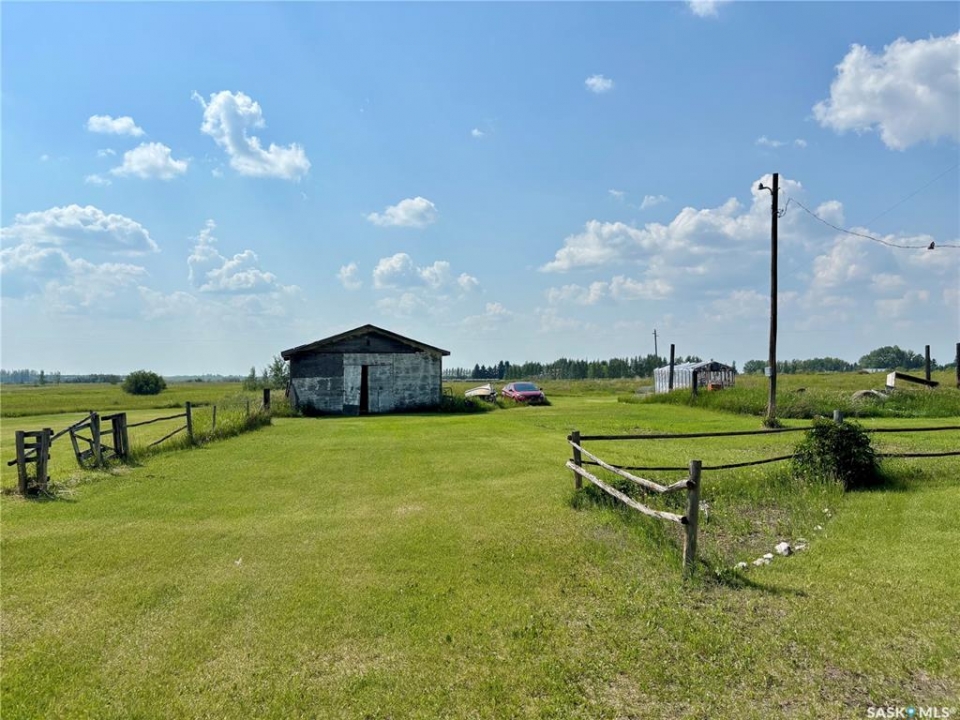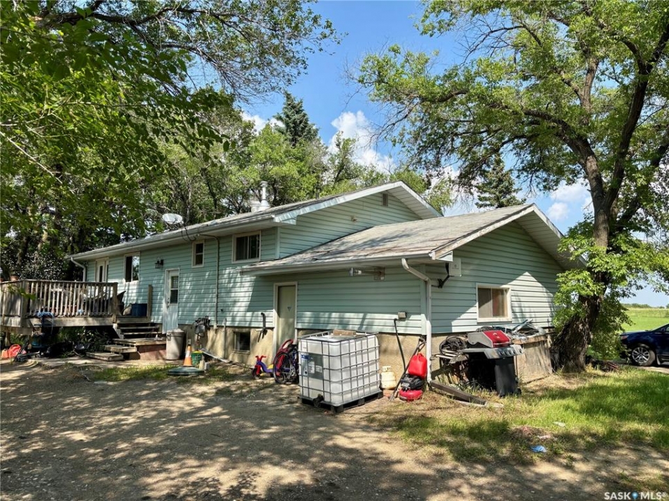 NEW LOW PRICE! Affordable Acreage living calls! Great opportunity in a prime location. Nice 3+1 Bedroom Raised bungalow just 7 minutes from town south on Highway 7 and adjacent to popular Sitina Estates!. Nice raised bungalow, new Vinyl plank in Kitchen being installed. Lots of potential for upgrades. Great yard setting with Shelter belt, Firepit, mature trees, and west facing deck. Good L-shaped layout with laminate floor, large main bath with jetted tub. White Heritage Kitchen, nice Eating area with Garden doors to deck. Basement offers loads of potential with family room, Bedroom, and direct access to finished and heated oversized single attached garage. Septic tank and holding tank for water. Build equity and your future with this great acreage! Call today!
