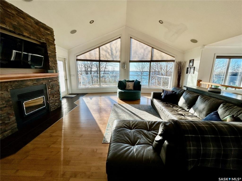 Discover lakeside living at its finest with this beautiful 1,610 sq. ft. bungalow offering comfort, style, and year-round luxury. Impeccably maintained and thoughtfully upgraded, this home is perfect for families, retirees, or anyone dreaming of peaceful waterfront living. Wake up to tranquil water views, sip morning coffee on the lakeshore, and embrace the peaceful beauty of Humboldt Lake. The main floor boasts 2 spacious bedrooms, 3 modern bathrooms, main floor laundry as well as a gorgeous newly renovated kitchen complete with in-floor heat, modern finishes, crisp quartz countertops and a stunning oversized island-making it the hub of the home, and the perfect place for entertaining. The open concept living room offers built in speakers, a grand wood burning fireplace, as well as gorgeous panoramic views and plenty of natural sunlight. The fully finished basement includes two cozy bedrooms, an exceptionally large 4-pc bathroom, ample storage and a grand family room perfect for hanging out after a beautiful day on the water. Additional features include an attached, heated 3 car garage with built in speakers providing a dream setup for vehicles, hobbies or extra storage, as well as a bonus "Man Shed"/Hangout Haven, being the perfect spot to unwind, watch the game, or chill with friends. Outside, the beautifully maintained grass, mature greenery, and lake views make it feel like your own private retreat. This property has it all, book your showing today and experience the beauty of Humboldt Lake for yourself!
