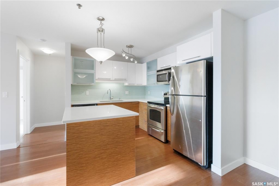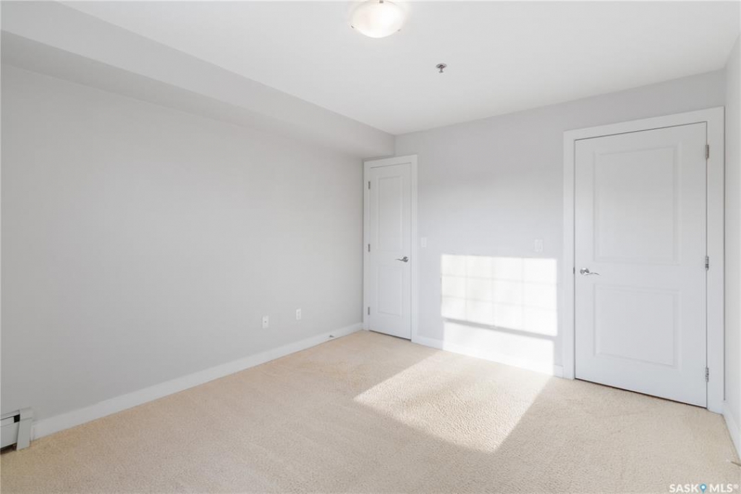 Welcome to 103C-415 Hunter Road in Stonebridge! This main floor, south facing two bed, one bath condo has everything one could need. Freshly repainted and ready for immediate possession. The condo boasts a smart layout with two bedrooms on opposite ends, a four-piece bath with a quartz countertop, and a kitchen with ample cabinet space and a functional island. The in-suite laundry room is convenient and the bedrooms features large closets. 2 parking stalls are included close to the entry. The complex is among the best in town, featuring an indoor pool and gym. It's within walking distance to many amenities and offers quick, easy access out of Stonebridge to Circle Drive. Owners are allowed to have 2 animals with board approval - smaller dogs allowed under 35 lbs allowed or two cats. Condo fees include water, insurance, heat, reserve fund, lawn care and snow removal.