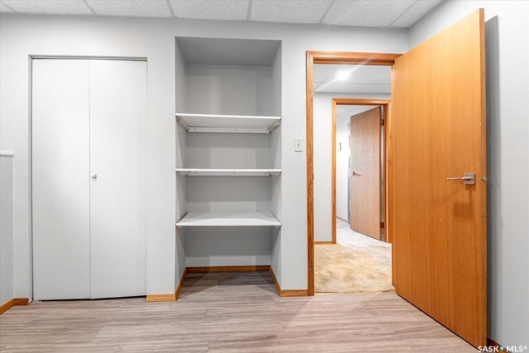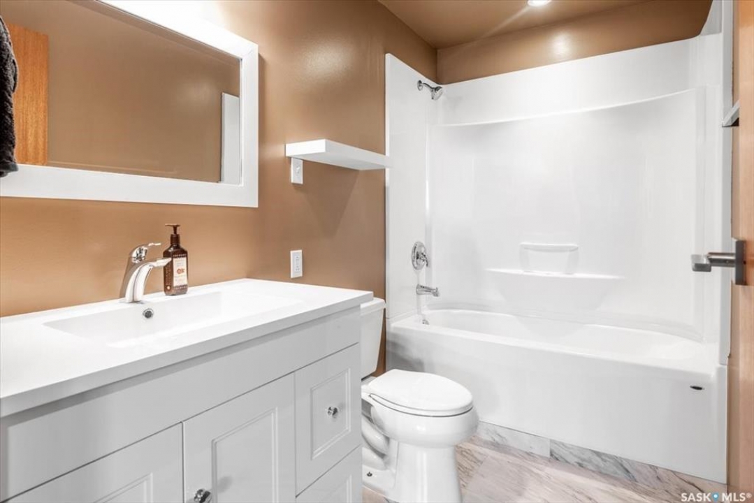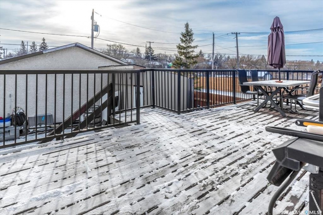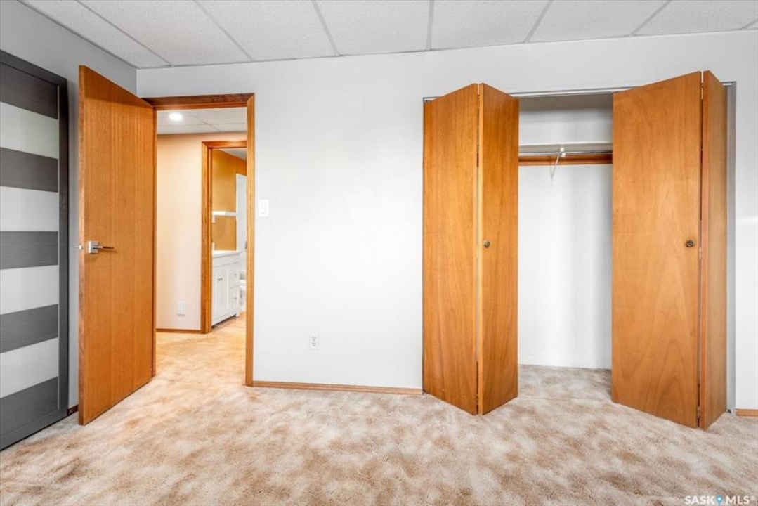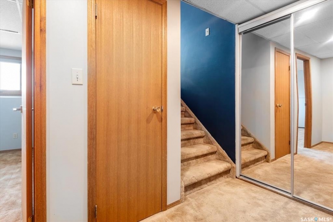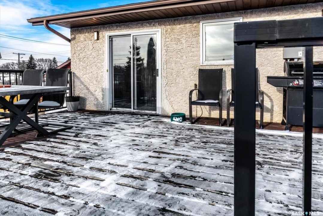 Welcome to a quiet area featuring a well-maintained 2-bedroom Bi-level on a spacious double lot. The property boasts an oversized, insulated, heated detached double garage (26' x 26') with a 10' ceiling, backing onto green space. Enjoy a private fenced yard in this updated home in Regent Park. This property has 50ft of frontage. The well-lit foyer leads to a bright kitchen/dining area opening to a sunken living room with updated flooring and paint. The main floor includes updated appliances in the kitchen, laundry, and bathroom. Downstairs, discover a large master bedroom and a second bedroom with updated flooring, an updated 4-pc bathroom. Garden doors off the kitchen lead to a large deck with new railings, overlooking a fire pit backyard, 25' x 30' concrete pad. This home, located on a quiet cul-de-sac, is ideal for first-time buyers and is close to schools and parks. Recent updates include shingles, garage doors, underground sprinklers, half bath, kitchen countertops, fence, entertainment area, and slag in the west backyard.