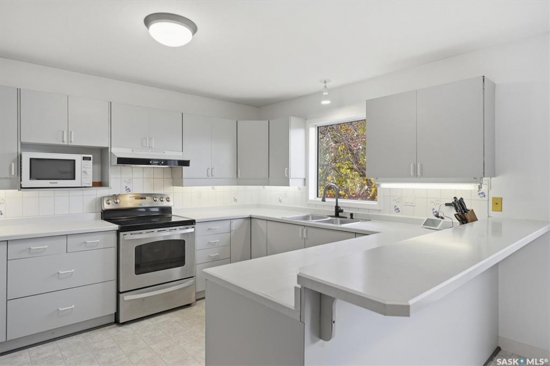 $$20,000.00 BUYER INCENTIVE FOR FLOORING$$. Welcome home to 614 Reid Road. You are greeted by a large foyer with stairways leading up or down. The main floor features an open concept kitchen and dining area. The kitchen features lots of cabinetry, peninsula with eating bar and upgraded stainless steel appliance package. The dining area has south facing garden doors leading out to the deck and back yard. The living room is spacious and features a gas fireplace. Finishing off the main floor is a 4 pc bathroom and a spacious primary bedroom with a 3 pc. ensuite. This second floor has two large bedrooms. The basement is fully developed including a family room with a gas fireplace, oversized bedroom, 3 piece bathroom, laundry, and storage room. The home has a finished 22 x 24 foot attached garage. Outside you will find a finished yard with a large deck, play unit and shed. Recent work to home includes triple pane windows 2017 shingles in 2020, air conditioner in 2022, deck in 2023, fridge in 2024, water heater and dishwasher in 2025. Located just minutes from the University of Saskatchewan, close to shopping, public transportation, the river, Sutherland Dog Park and Herbert Stewart Park. This home is complete and ready for its next family!