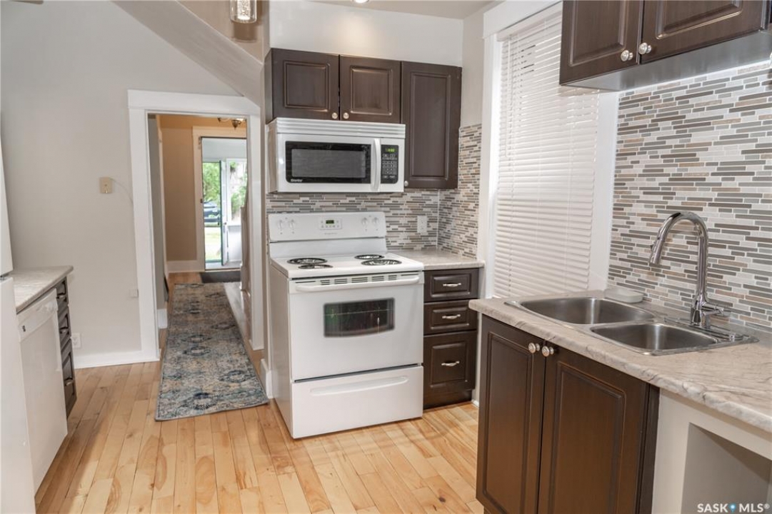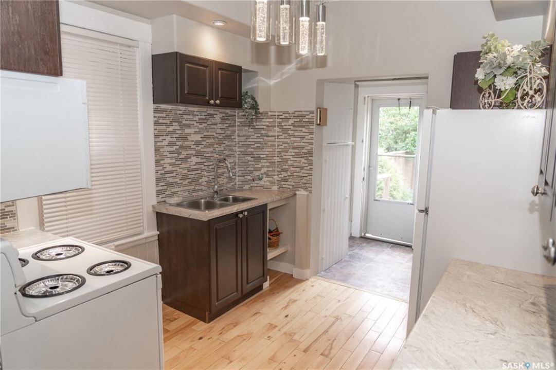 Welcome to this beautifully maintained property that perfectly blends classic character with thoughtful, modern updates. This home has seen numerous recent improvements, including a brand-new high-efficiency furnace, newer high-efficiency water heater, two brand-new windows (2025), a newly completed basement family room (2025), and an updated kitchen featuring freshly refinished countertops and a stylish new backsplash (2025). Approximately 10 years ago, the windows, hardwood flooring, kitchen cabinetry, and shingles were all updated—giving you peace of mind for years to come. All furniture currently in the home is included with the purchase. Situated on a fully landscaped lot, this home offers an exceptional central location—nestled between downtown and the vibrant 33rd Street business district, with quick access to Idylwyld Drive and all major amenities. Inside, the main floor welcomes you with a bright sunroom, a cozy living room showcasing gorgeous hardwood floors, and a well-appointed kitchen with ample cupboard and counter space. All kitchen appliances are included. The second floor features three generously sized bedrooms and a full bathroom, while the third floor provides two additional bedrooms—ideal for a larger family, home office setups, or guest accommodations. The basement offers a completed family room, three-piece bathroom, laundry area, and plenty of room storage. This property is truly move-in ready and full of opportunity—whether you're looking for a family home or an investment property. The owner previously achieved $3,000–$3,500 per month furnished, over five years ago, highlighting strong income potential. Don't miss your chance to own this one-of-a-kind home in a prime location!