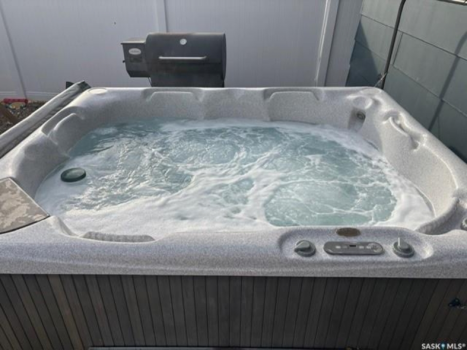 Incredible Value in Lafleche! This 1,256 sq ft bungalow offers everything you need and more for an unbeatable price. Featuring 4 bedrooms, 2 bathrooms, a spacious kitchen, main floor laundry, and a huge rec room in the fully finished basement, this home is perfect for families, retirees, or anyone seeking space and comfort. Enjoy extras like a sauna, home gym (equipment not included), and a hot tub on the patio — all with no neighbors behind you and a private backyard. The attached 2-car garage adds convenience, and appliances are included. Solidly built and well-maintained, this home is ready for its next owner. Don't miss out on this rare find in Lafleche — value like this is hard to beat!