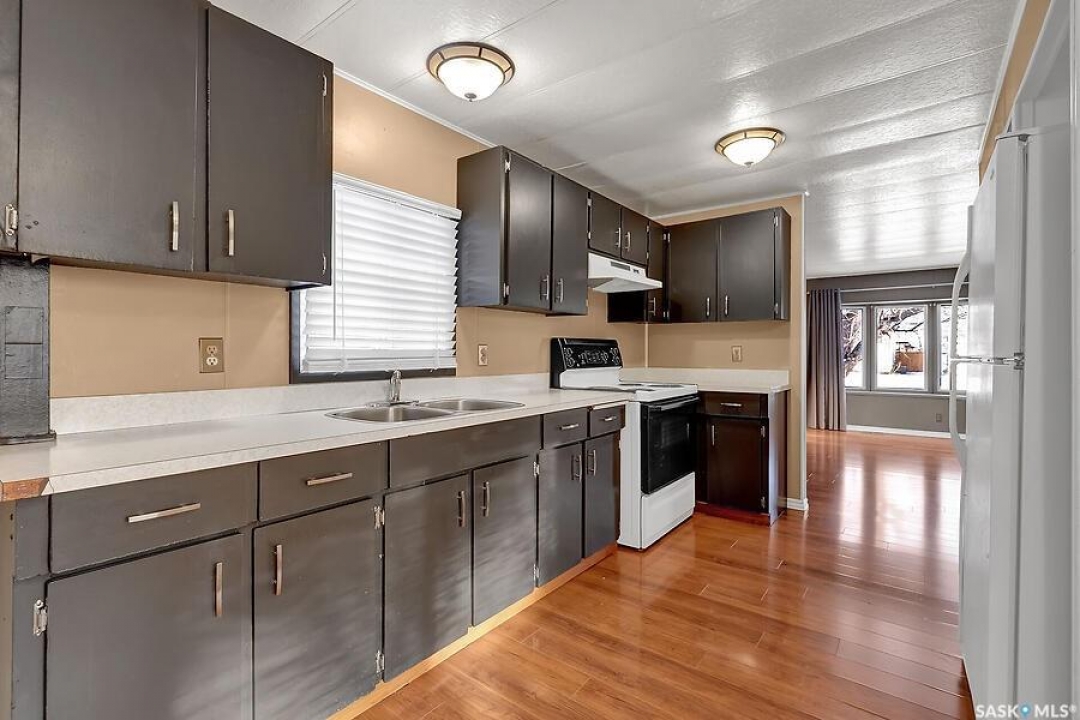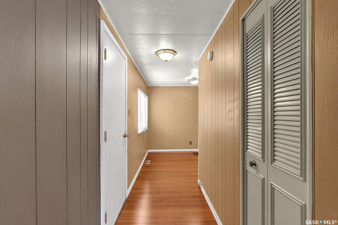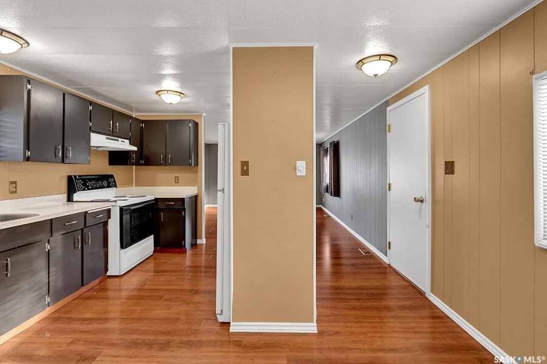 Move in ready! Fantastic starter, retirement home or revenue property! Recent upgrades include a new Bath fitter tub/tub surround & bathroom flooring (Dec 2025), new entrance deck with Black Regal Railing (Oct 2025), newer skirting--2" rapid wall vinyl R9 insulation (Sept 2021), newer water heater (2023) and the garage roof (Summer 2019), Welcome to this cozy 3 bedroom, 1 bath home with a bonus mud room, this home is located on a quiet corner lot in town. Detached garage is a plus for storage and your vehicle. This is an affordable opportunity to enjoy small-town living with a big community spirit. The community of Bethune offers a K-8 elementary school (high school students bussed to Lumsden), Conexus Credit Union, Co-Op Grocery & Gas Station, Fitness Center, Library, Community Hall, Local Insurance Broker, Bookkeeping services and many active local clubs. Sports enthusiasts will love the hockey and curling rinks! New subsidized daycare beside the splash park and playground. Plus, Bethune is the closest community to the K+S Potash Mine, this location is ideal for work and leisure! Don't miss out on this move-in-ready little gem in a thriving community!