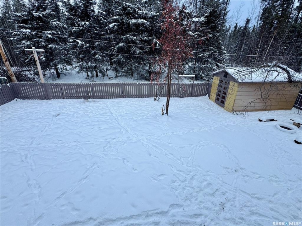 Check out this unique 2 storey home on a lovely quiet street in La Ronge! Backing onto a green space of trees, this large home is thoughtfully designed to enjoy as one family or multiple generations living together under one roof. Upstairs you find a beautiful modern eat-in kitchen with white cabinets, butcher block counters, a built in wall oven, cooktop, a large pantry, and a window to the huge living room. There are 4 bedrooms upstairs - the large master features a view of the backyard, his and hers closets, and a jack-and-jill ensuite shared with another bedroom (what a perfect set up for a nursery!). On the other side of the house, there are 2 more bedrooms and a full bathroom with a tub & shower. On the main level, there is a full laundry room and main entrance to the house with access to the oversized single car garage, and then as a huge bonus, you find a non-conforming mother-in-law suite with a kitchenette, bathroom with a shower, a large bedroom, a separate entrance, and laundry located in the garage. The house is heated with a newer natural gas furnace and you can have endless showers and baths with the natural gas on demand water heater! Outside, the fenced backyard is nicely landscaped, has a large raised back deck off the dining room, garden beds, a lovely fire pit area, and a storage shed. There is tones of value in this lovely home - don't miss out!