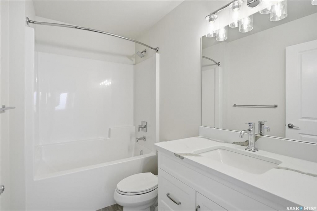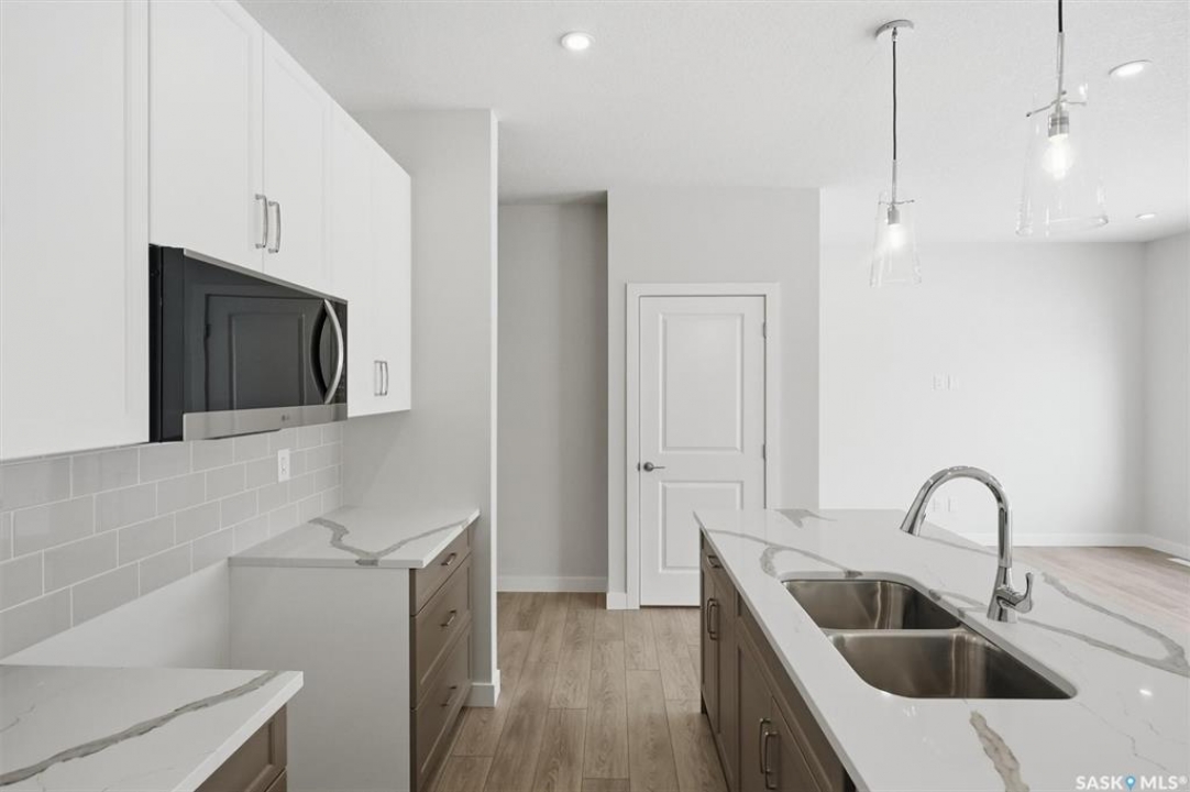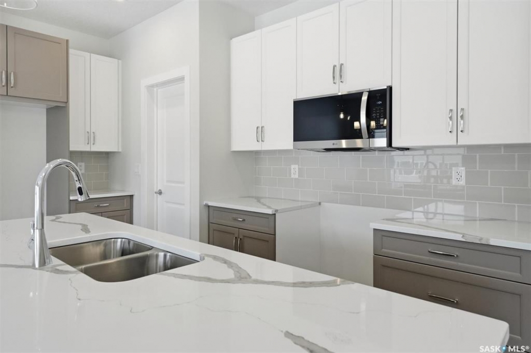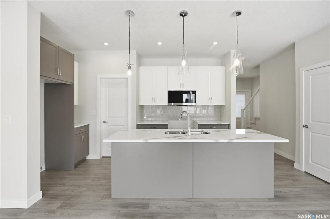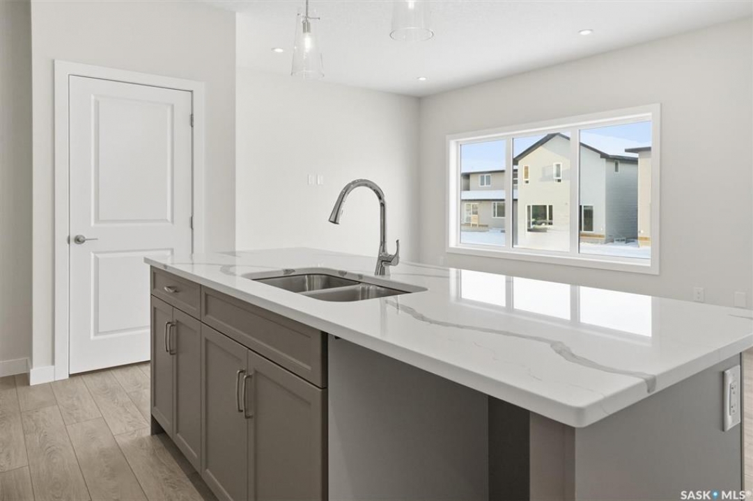 The "Oliver" by North Ridge Development Corporation is a "Suite Ready" 1501 square foot 2-Storey home located in the growing community of Brighton. A bright main floor layout featuring a large kitchen with walkthru pantry and island, dining area, living room, and 2-pce bath. Durable vinyl plank flooring in kitchen, living and dining rooms is attractive in appearance, high quality shelving in all closets and an upgraded trim package giving a fresh and modern feel along with beautiful cabinetry and quartz counter tops. The 2nd level features 3 bedrooms, a 4-piece main bathroom, and laundry. The master bedroom showcases beautifully with a 3-piece ensuite and walk-in closet. A side basement entry adds potential for future development or suite options. This home also includes a heat recovery ventilation system and high efficient furnace. GST and PST included in purchase price with applicable rebates to builder. Saskatchewan Home Warranty Premium Coverage. This home is move-in ready!