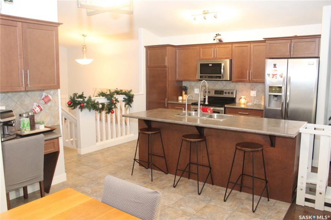 Fantastic well kept home in The Greens. This Bi-level has been meticulously maintained and updated extensively with a newly developed basement! The entire home has recently been painted. As you enter you will have a large foyer with high ceilings to greet your guests with plenty of room to move and closet space. Entering the main, you will feel the open concept living area with vaulted ceilings complete with a large kitchen with all appliances included! There is a large island with room for stools and an additional eating area, plenty of cupboard space and a nice backsplash. The Livingroom has expansive windows that allow plenty of natural light, and a dinning area that would accommodate a large table for those important family meals. There is even a nice sized window in the dining area with door out the deck for easy access to the barbecue. Also on the main, you will find a nice sized bedroom between the four piece bath and huge master bedroom boasting extensive windows and natural light. The lower level has recently been developed and has large windows that a bi level allows for and not having a basement feel at all. The large rec area has new flooring and barn door to utility and a beautiful fireplace adding great ambience on those chilly winter days. There are two additional bedrooms and a stunning three piece bath that completes this level. Outside both front and back are fully landscaped and the back is completely fenced with a large tiered deck area, hot tub (negotiable) in addition to a double detached garage. You will not be disappointed with the care and pride of ownership of this home so make your appointment to view today! The Greens provides a convenient location to schools, parks, paths, and shopping with easy access to the Overpass and Ring Road. There is great flexibility with possession date.